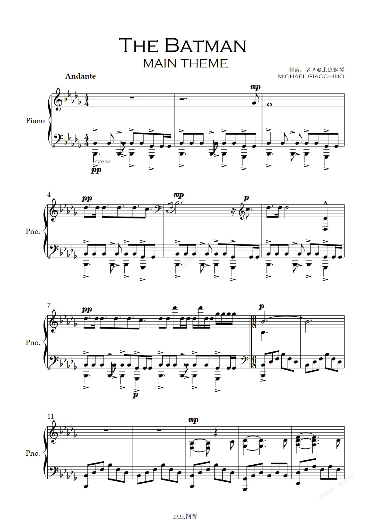 钢琴谱:The Batman Main Theme 蝙蝠侠主题曲