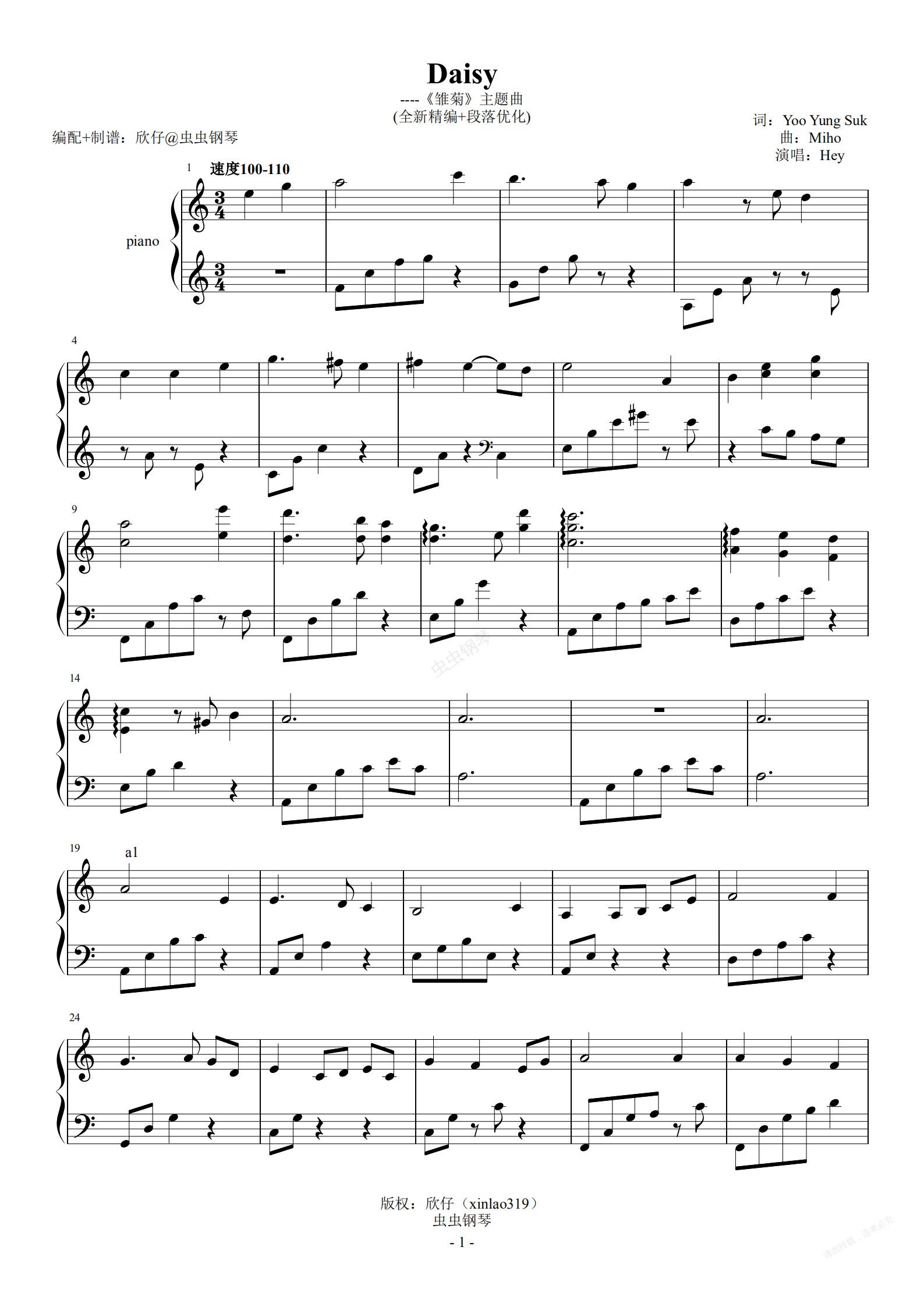 钢琴谱:C-《Daisy》(《雏菊》OST、全新精编+段落优化)