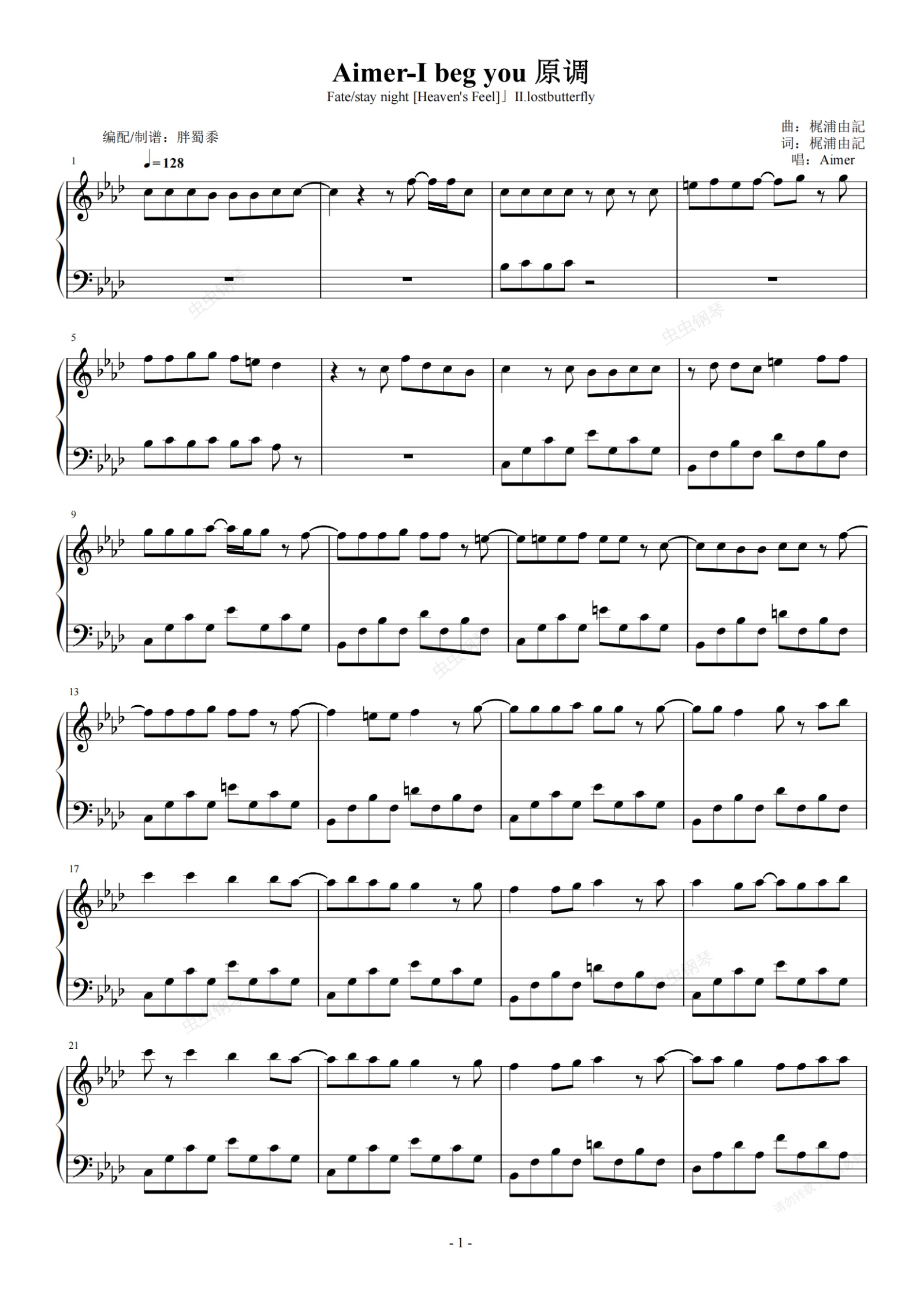 钢琴谱:Aimer-I beg you剧场版Fate stay night原调