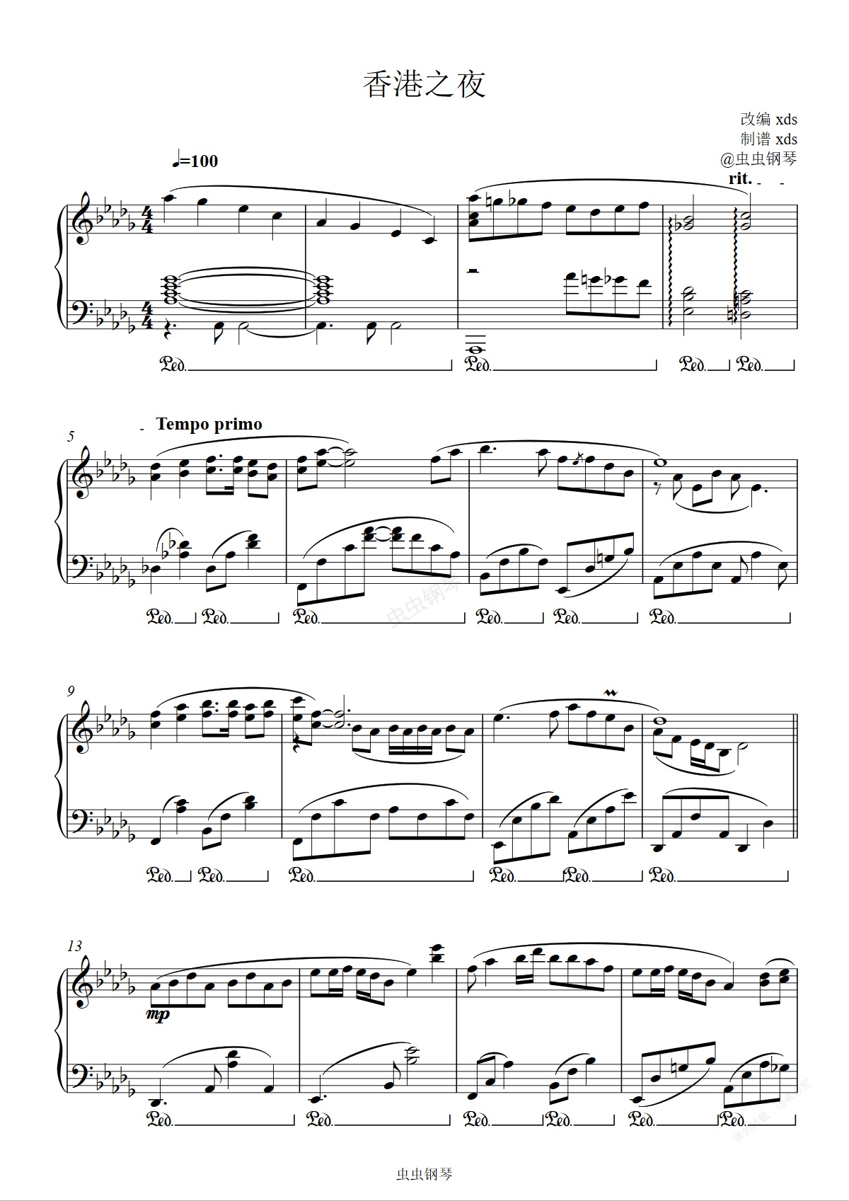 钢琴谱:香港之夜