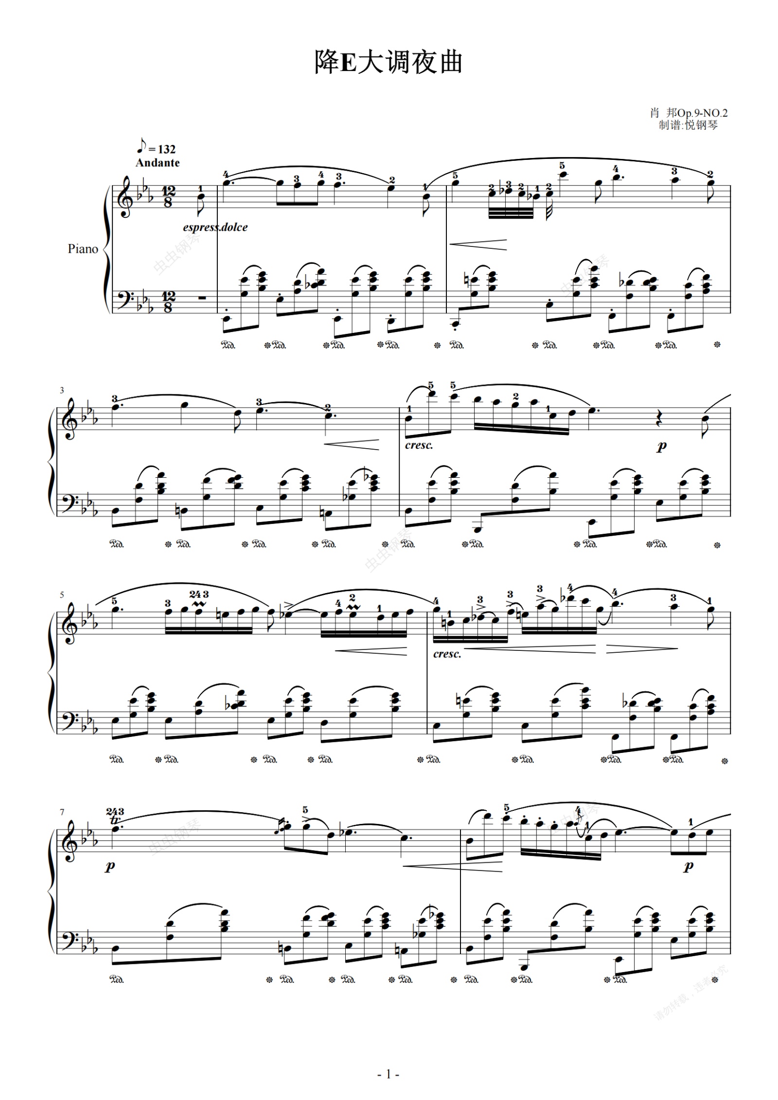 钢琴谱:肖邦 降E大调夜曲作品Op.9-NO.2