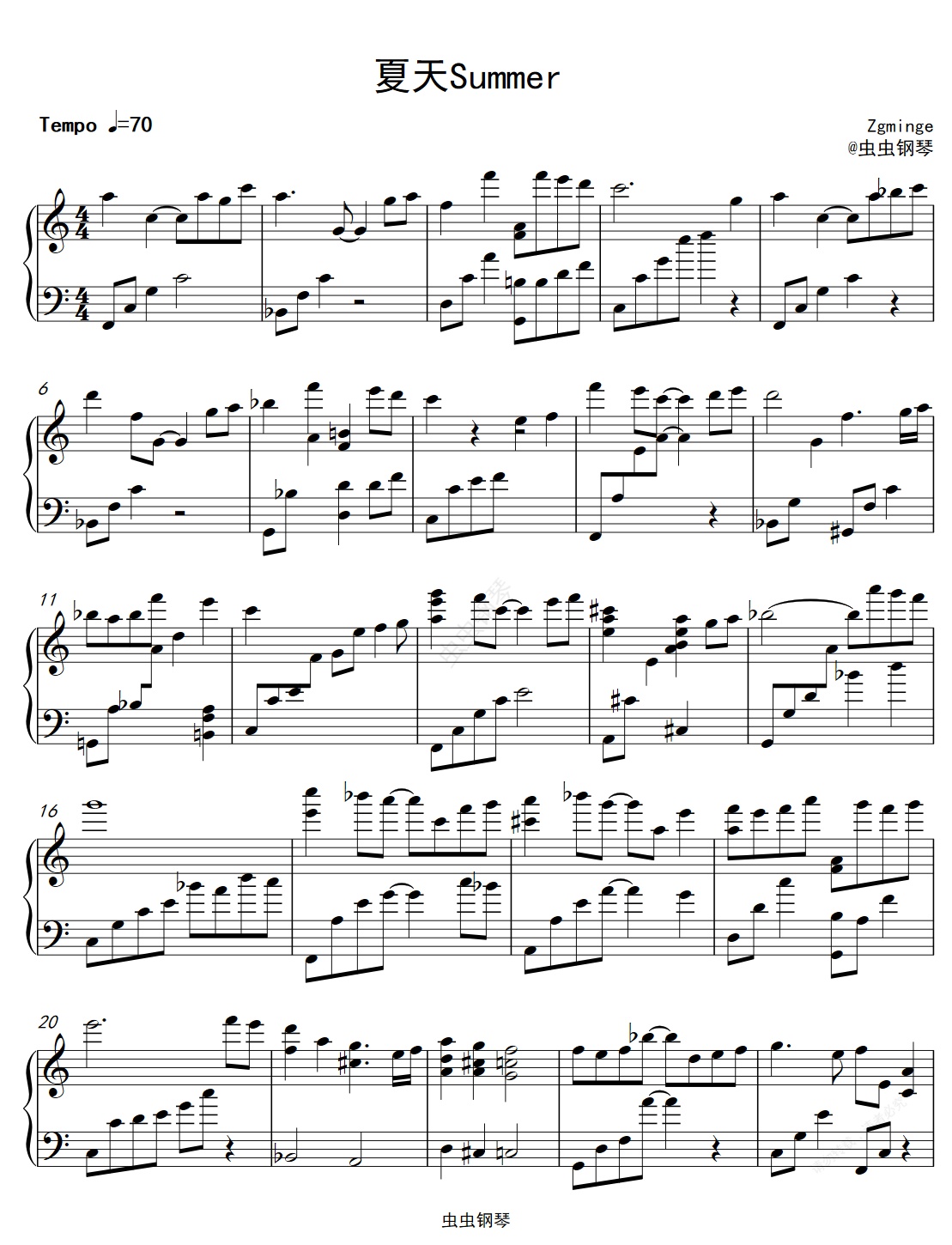 钢琴谱:夏天Summer