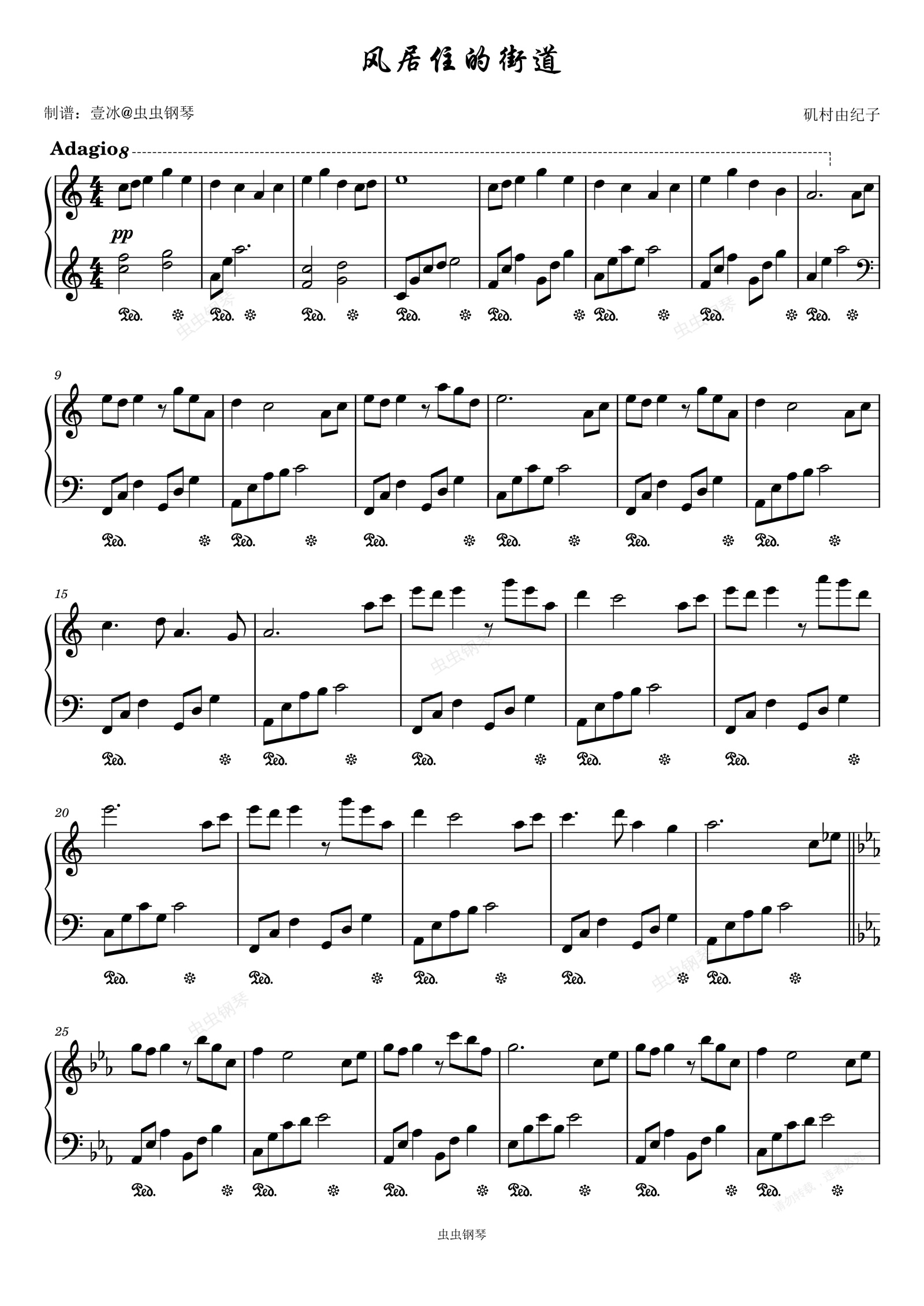 钢琴谱:风居住的街道//C调 中间有转调 简单易上手