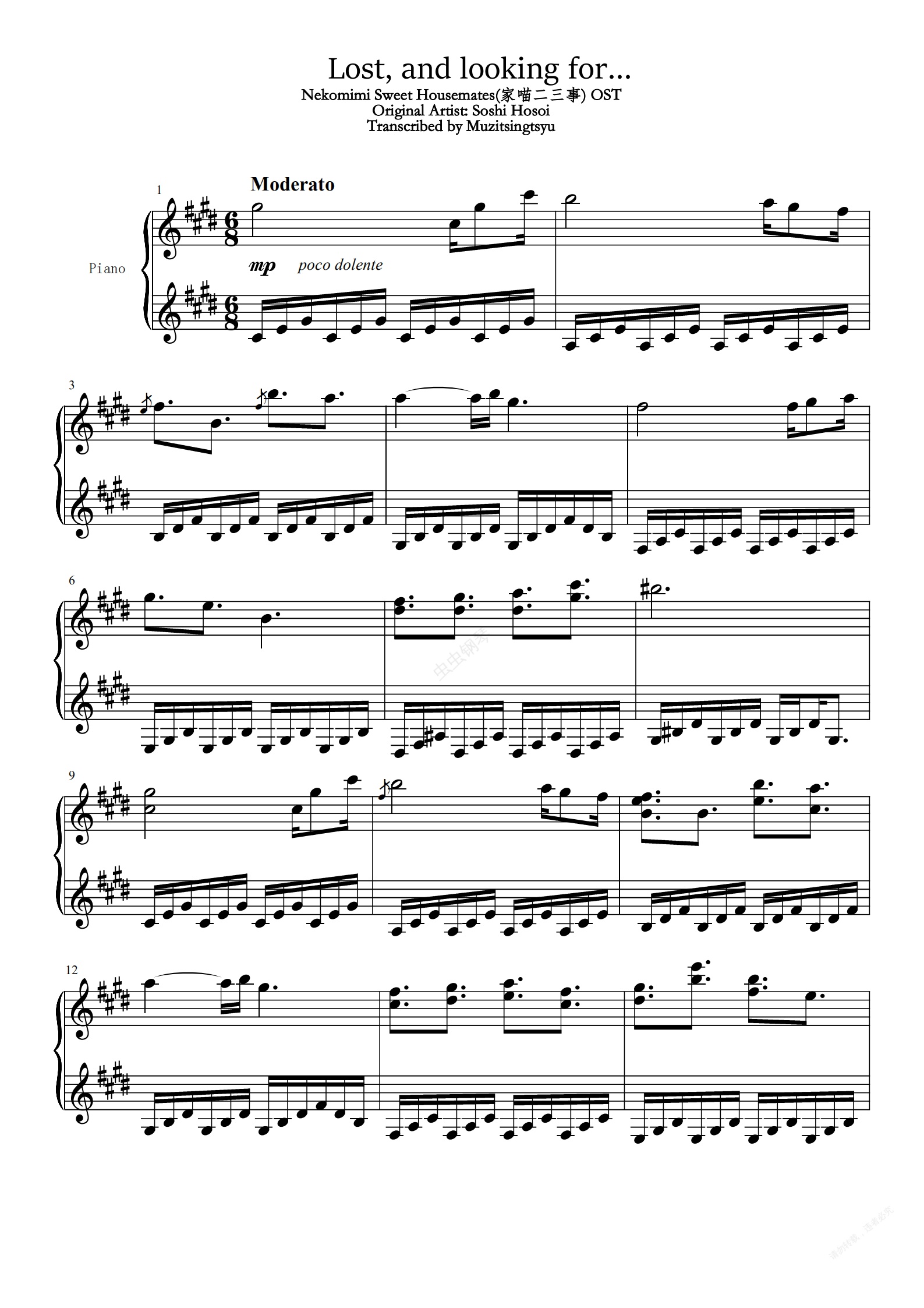 钢琴谱:[家喵二三事]《Lost,and looking for...》钢琴谱