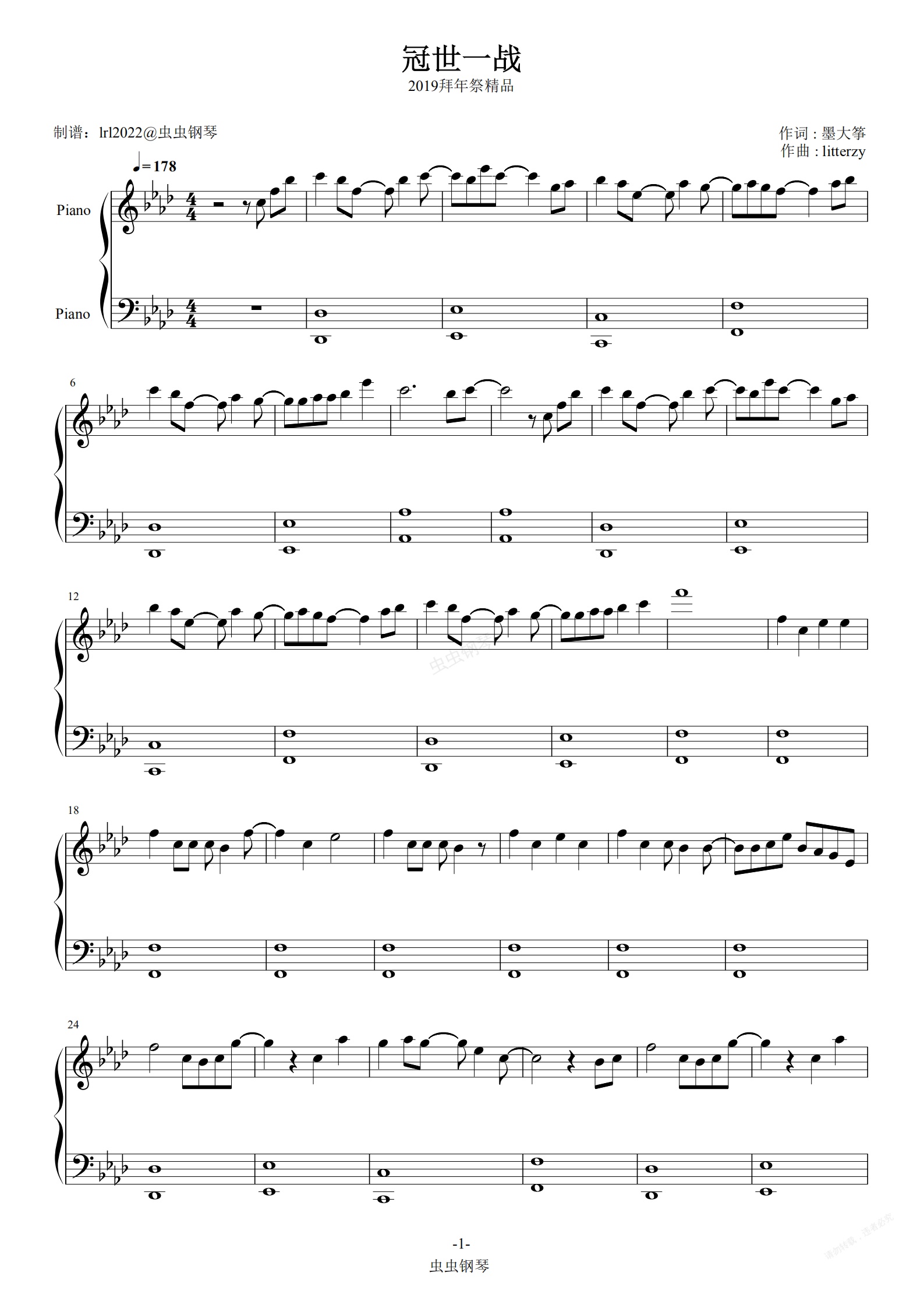 钢琴谱:冠世一战-2019拜年祭精品-独奏版-钢琴谱
