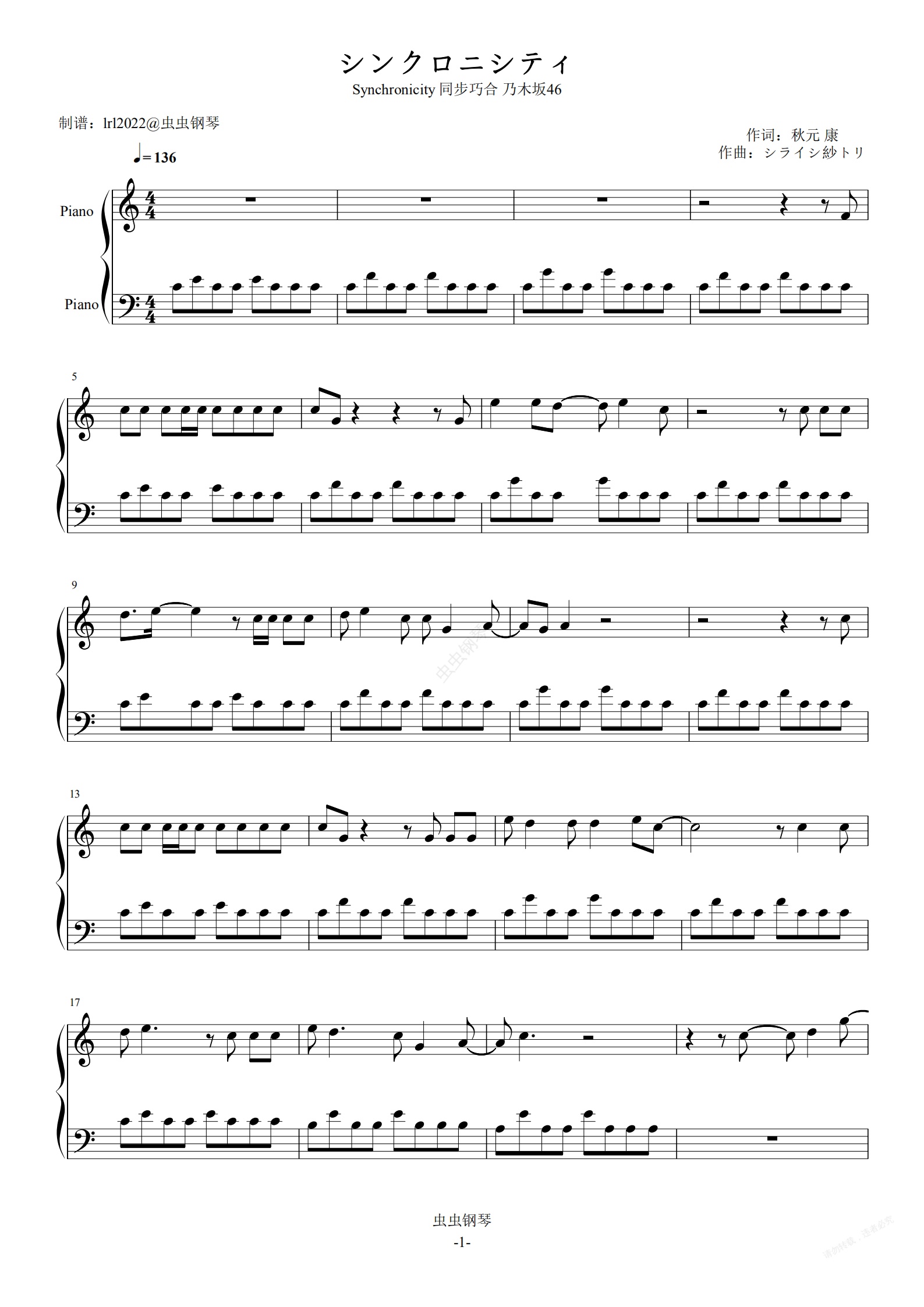 钢琴谱:シンクロニシティ-Synchronicity-同步巧合-乃木坂46-独奏版-钢琴谱
