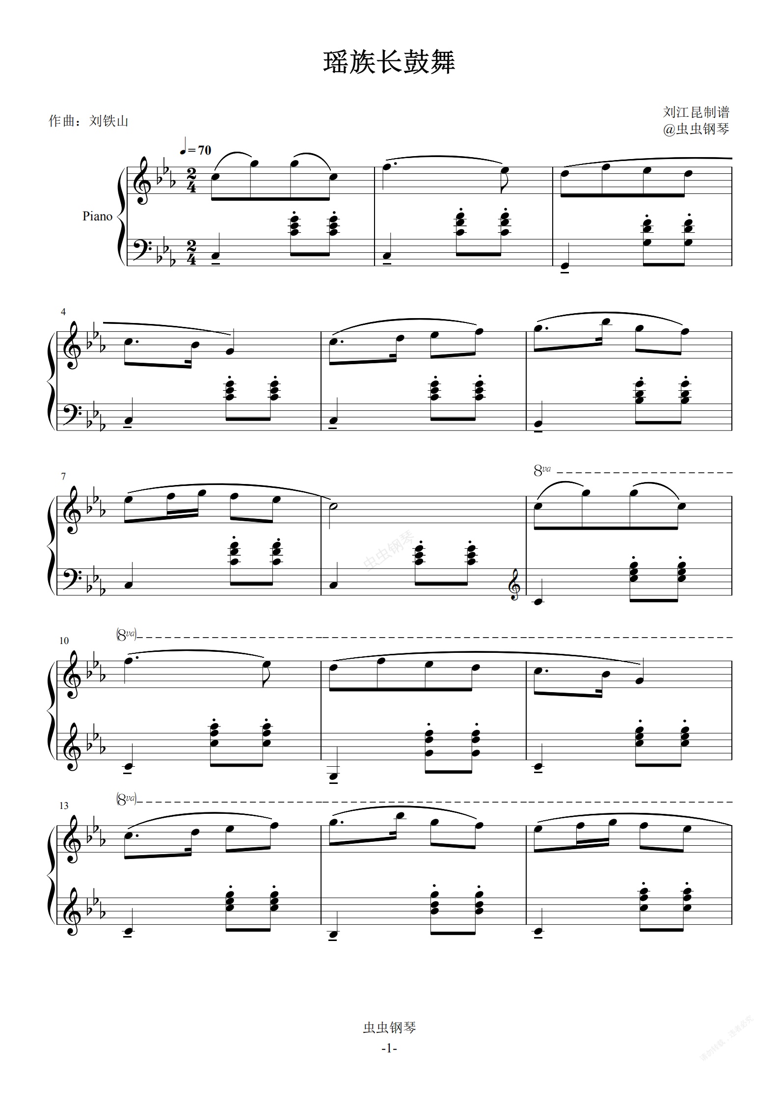 钢琴谱:瑶族长鼓舞(钢琴基础教程1版本)