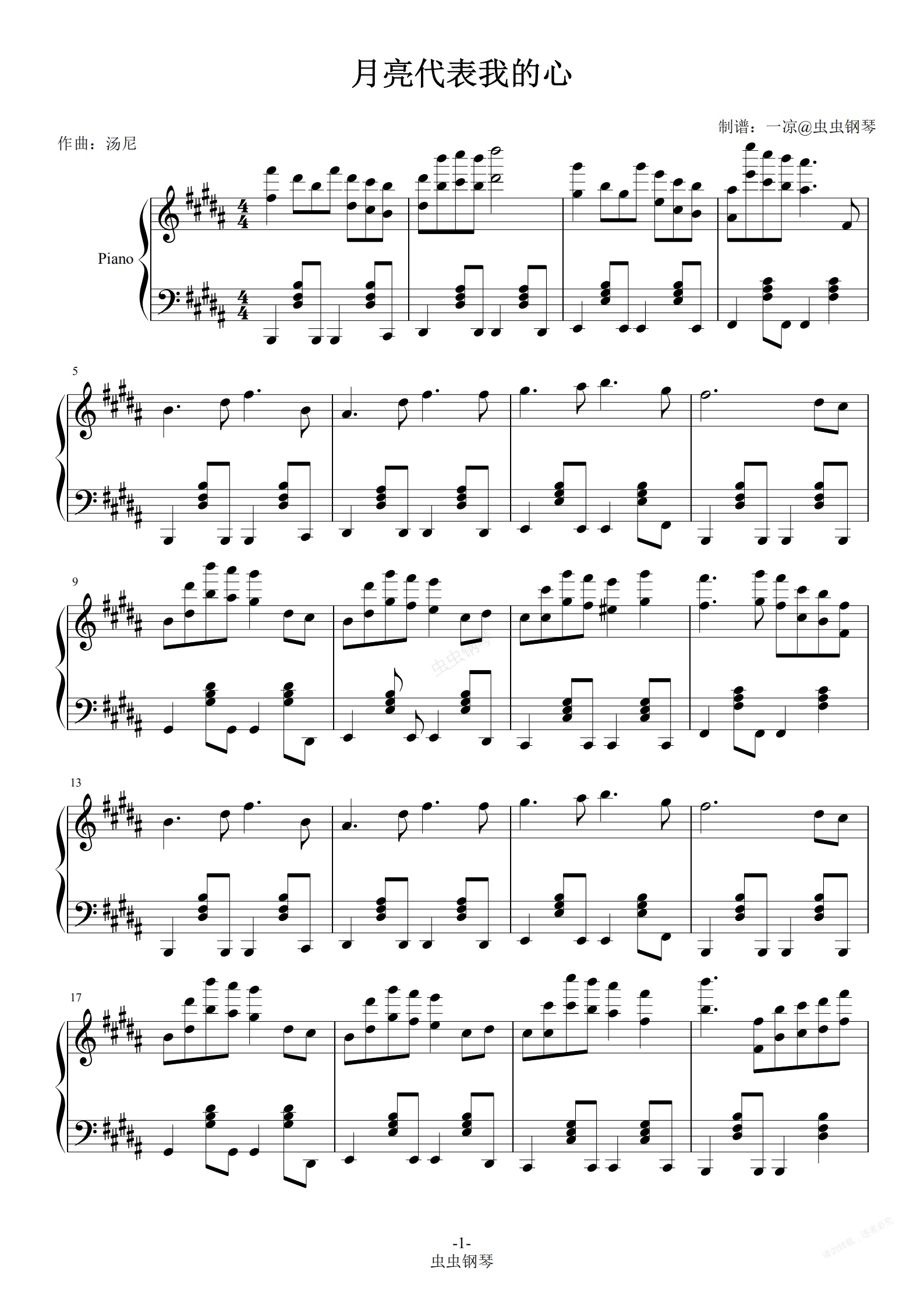 钢琴谱:月亮代表我的心 街头炫技版本 可唱可独奏