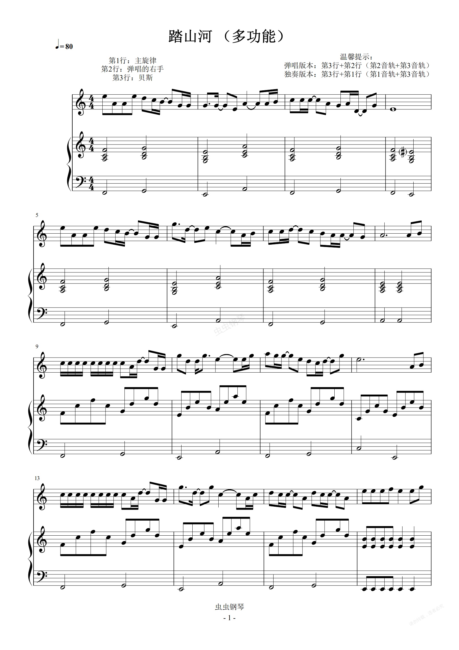 钢琴谱:踏山河 C调 弹唱+独奏 简易(小汤3)