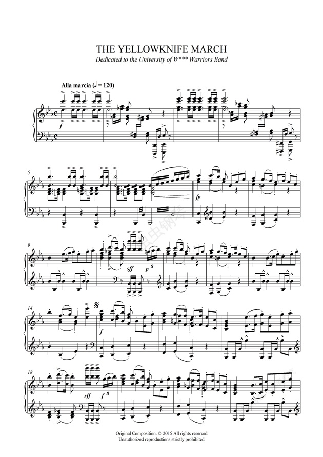钢琴谱:The Yellowknife March / 黄刀进行曲