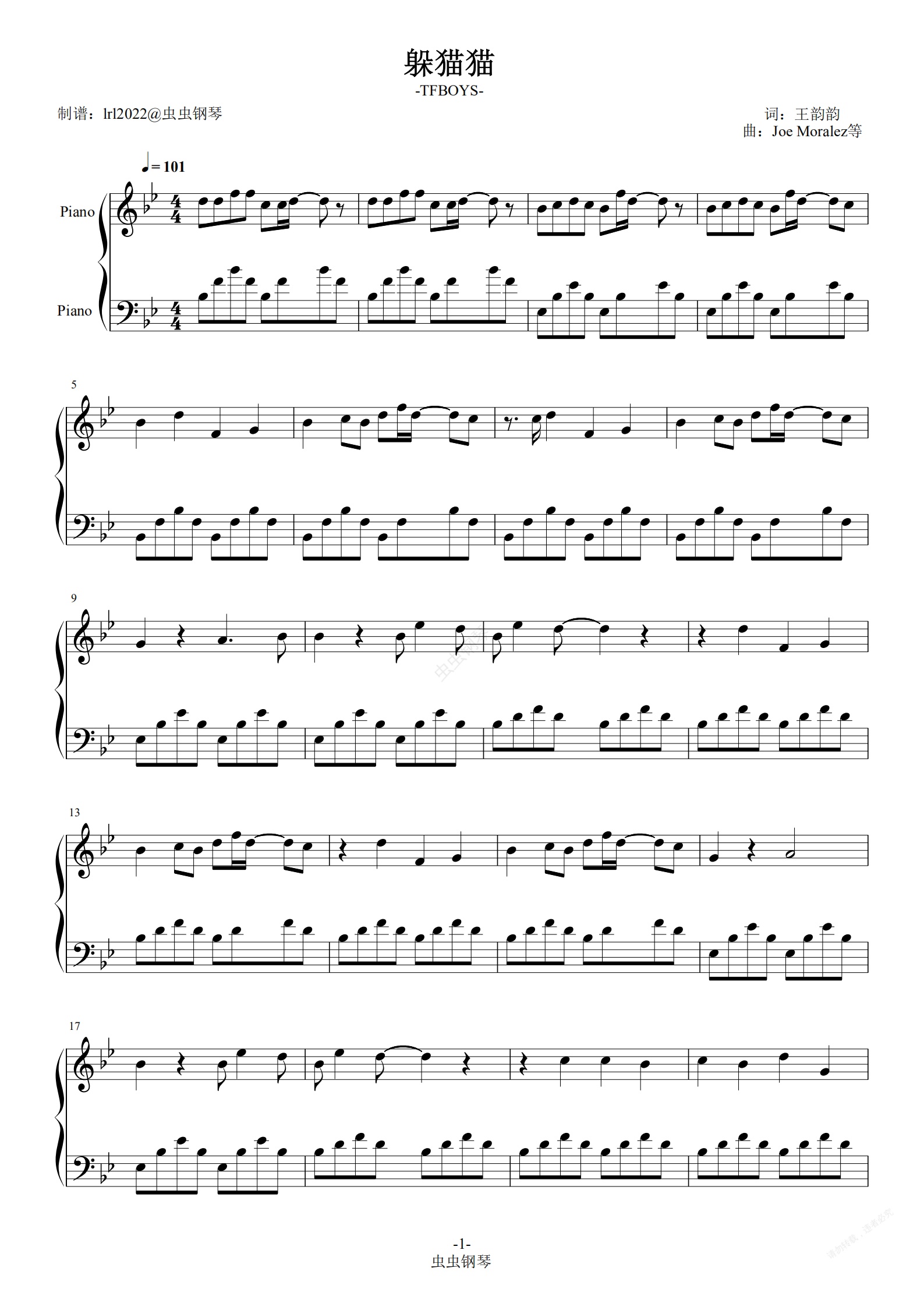 钢琴谱:躲猫猫-TFBOYS-独奏版-钢琴谱