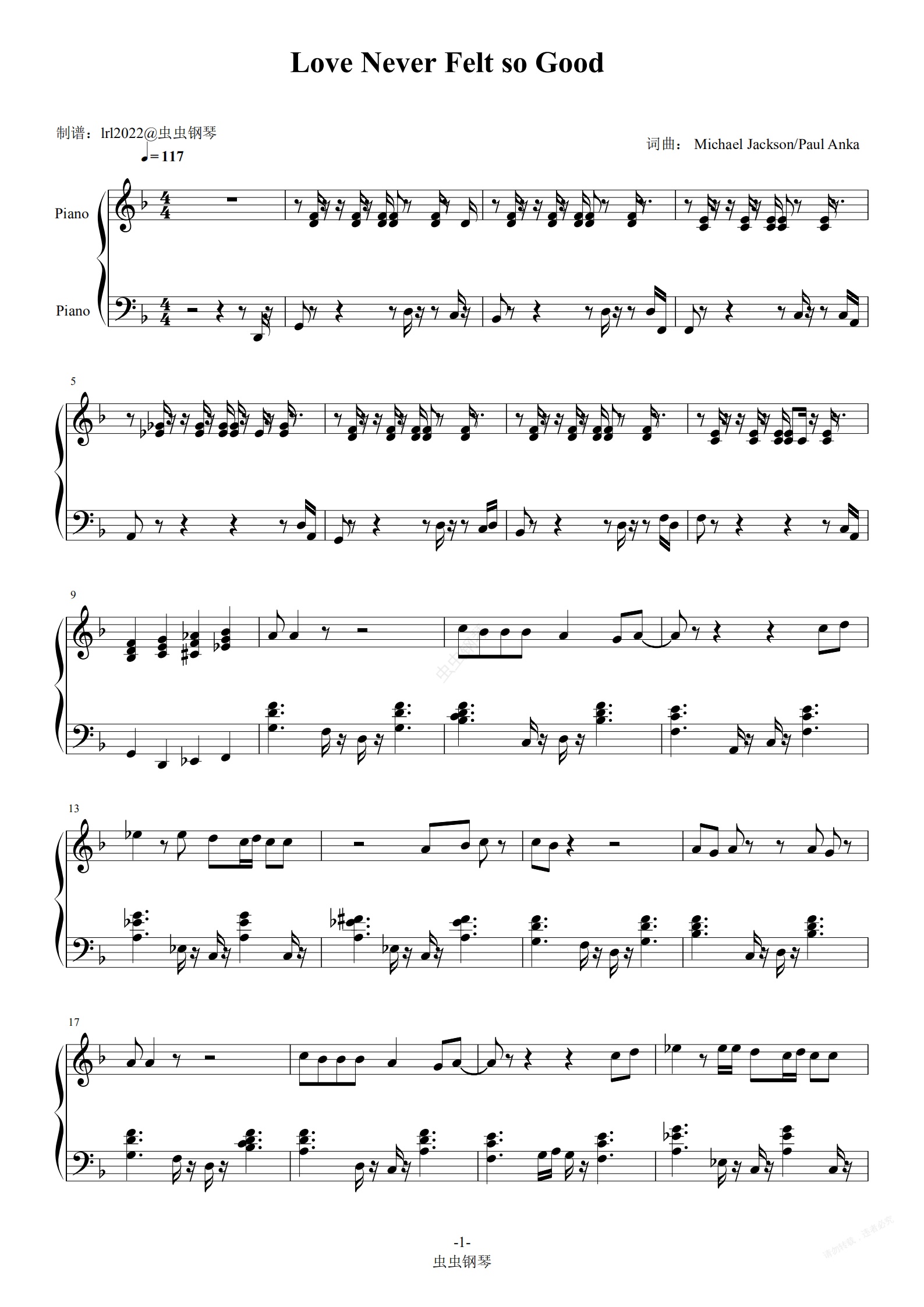 钢琴谱:Love Never Felt so Good-迈克尔·杰克逊-Michael Jackson-独奏版-钢琴谱