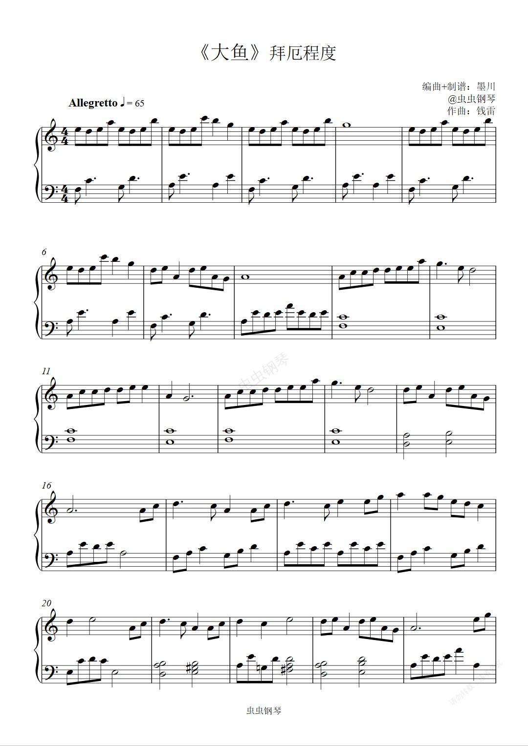 钢琴谱:大鱼—周深—拜厄程度