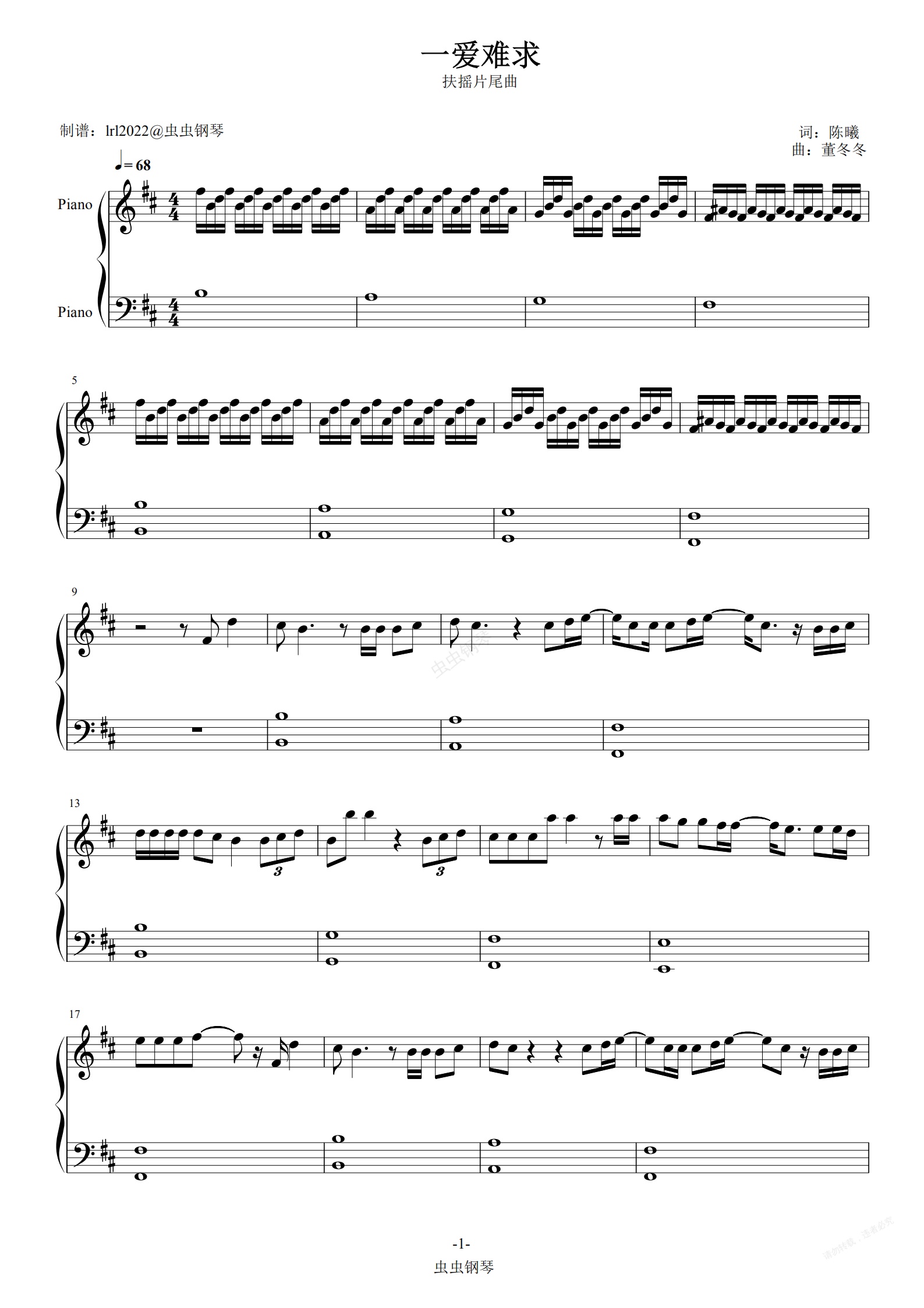 钢琴谱:一爱难求-扶摇片尾曲-独奏版-钢琴谱