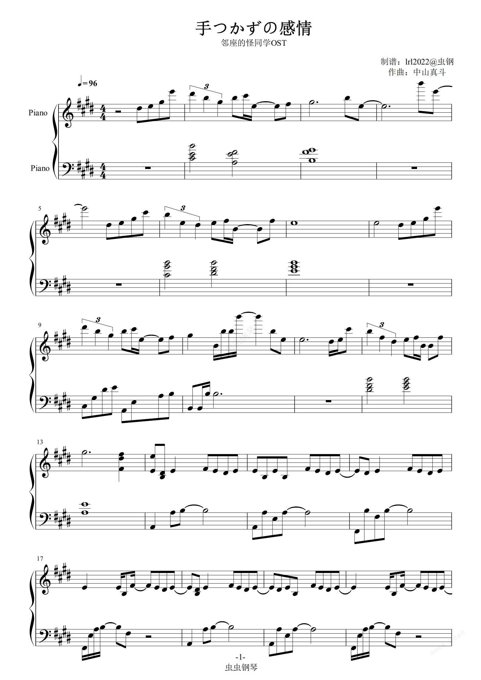钢琴谱:手つかずの感情-邻座的怪同学OST-独奏版-钢琴谱
