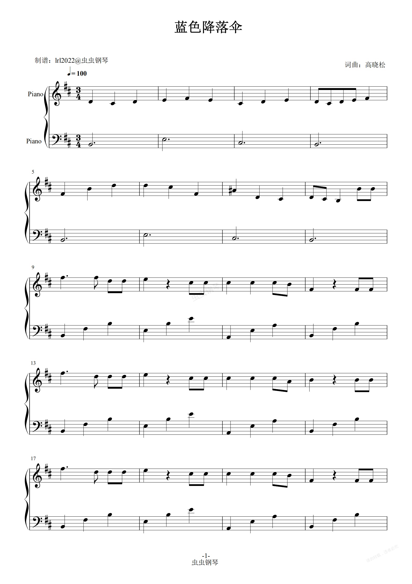 钢琴谱:蓝色降落伞-周深-独奏版-钢琴谱