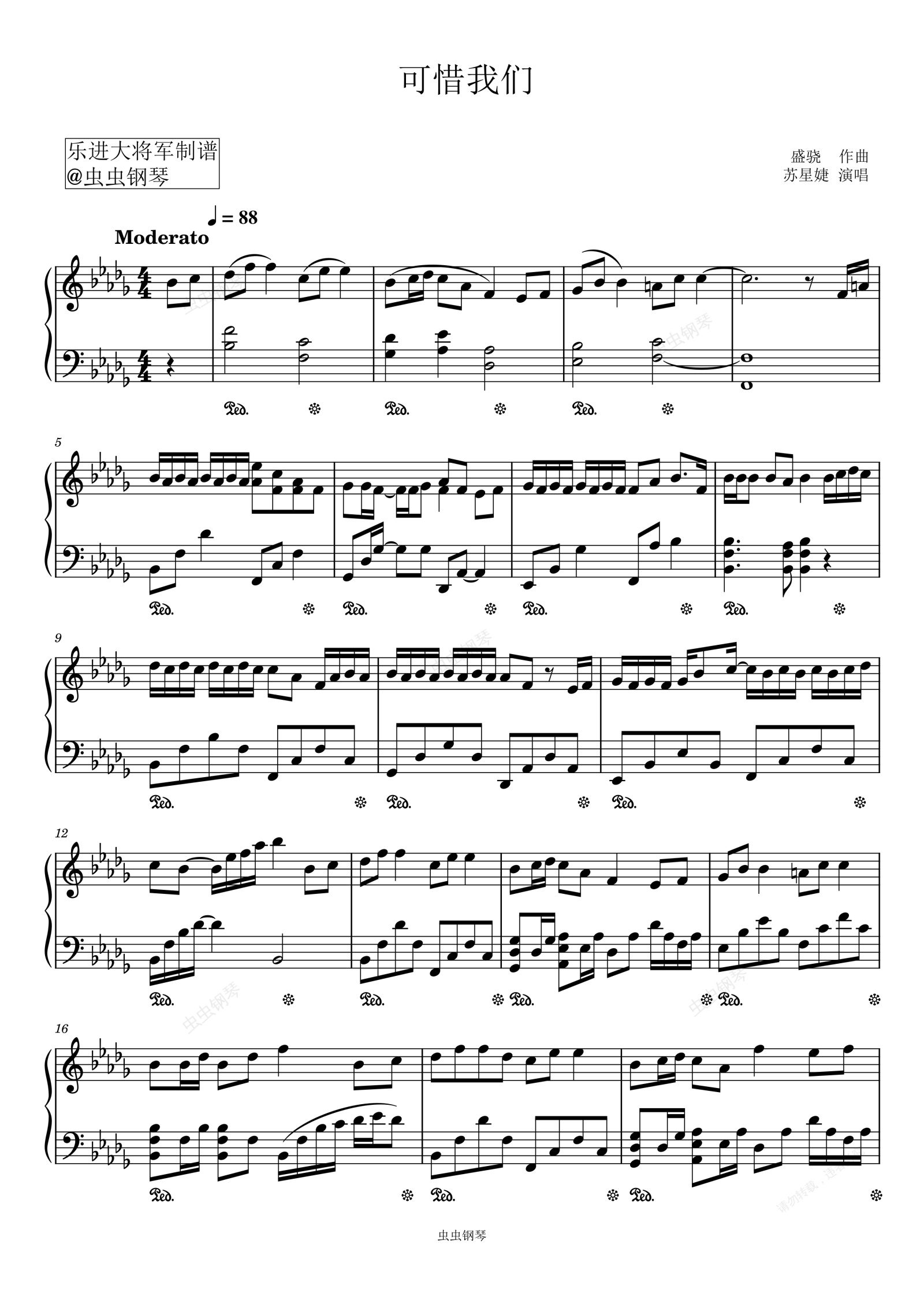钢琴谱:可惜我们 苏星婕 原调演奏版