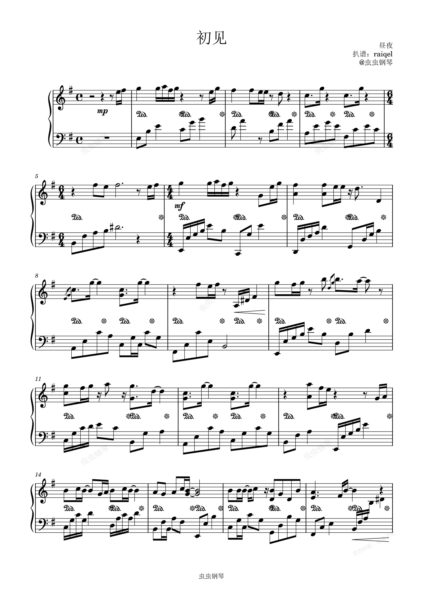 钢琴谱:初见-昼夜(眷思量之烟霞海客)