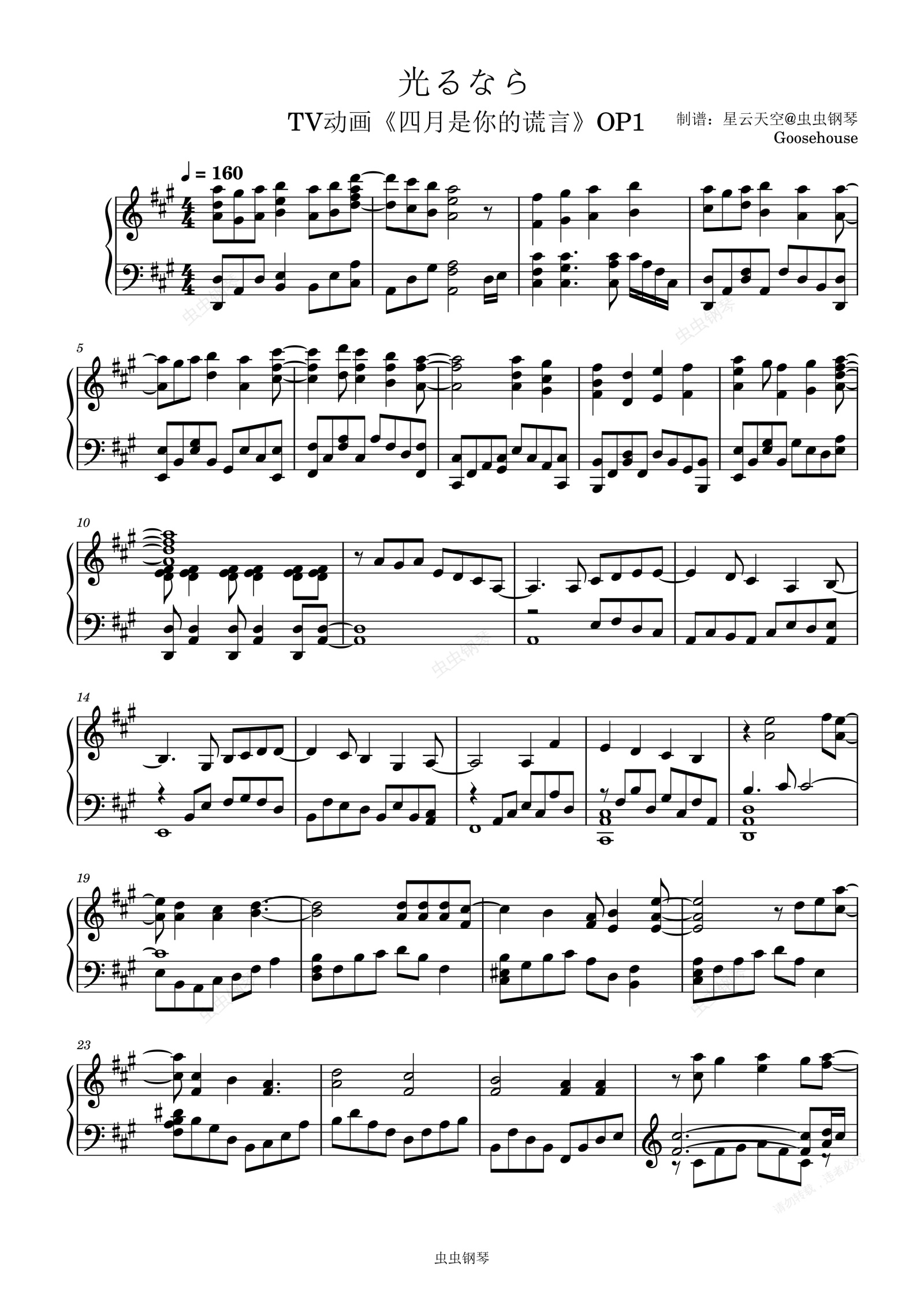 钢琴谱:四月是你的谎言OP1 - 光るなら (若能绽放光芒)