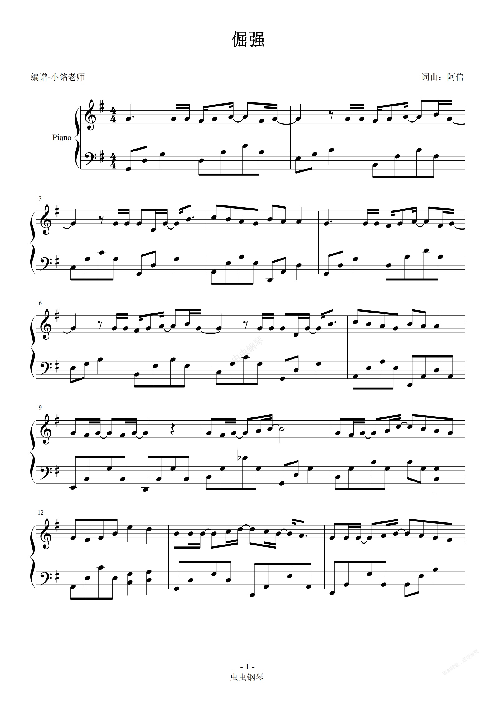 钢琴谱:倔强 【简易 动听】