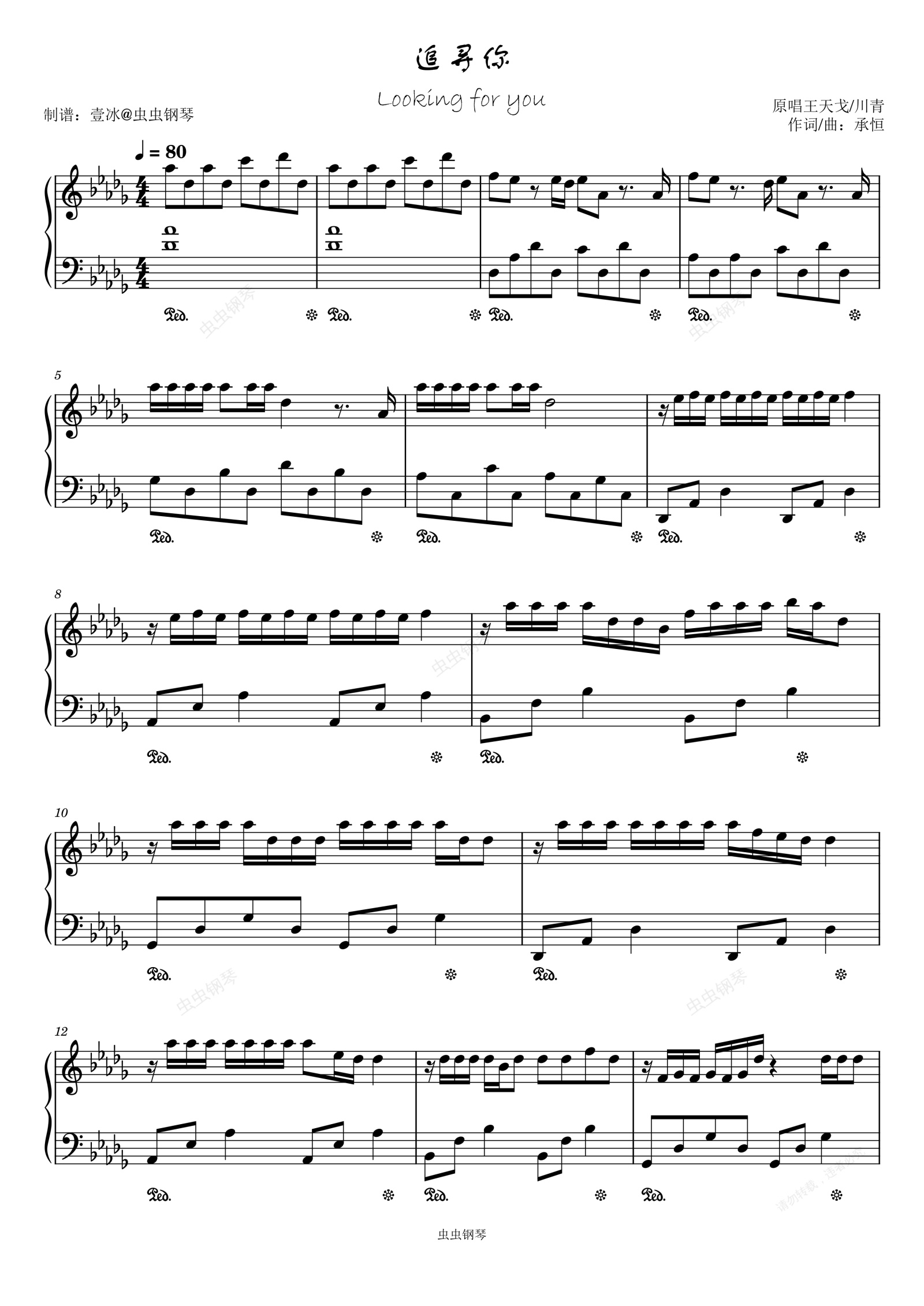 钢琴谱:追寻你//简单易上手 完整版-原调