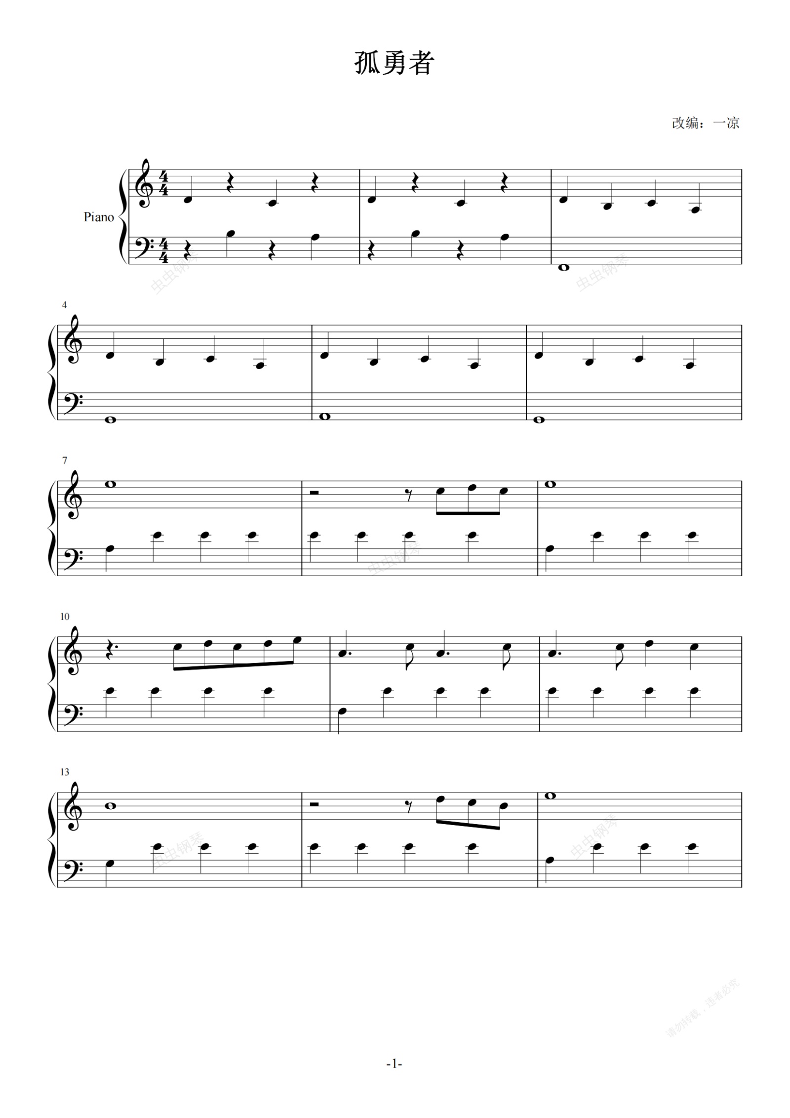 钢琴谱:孤勇者-陈奕迅 最易上手版本