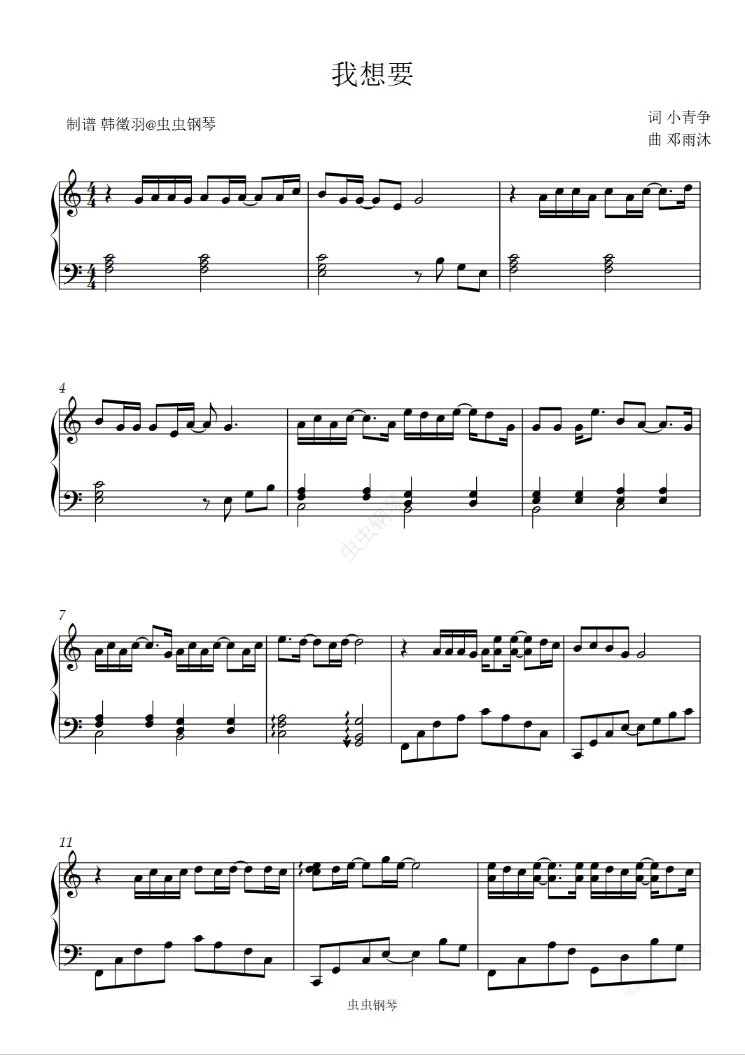 钢琴谱:我想要 盖君炎 超好听版
