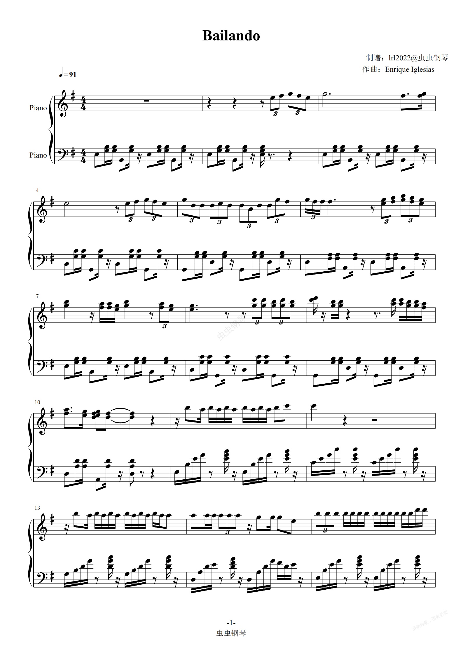 钢琴谱:Bailando-Enrique Iglesias-独奏版-钢琴谱