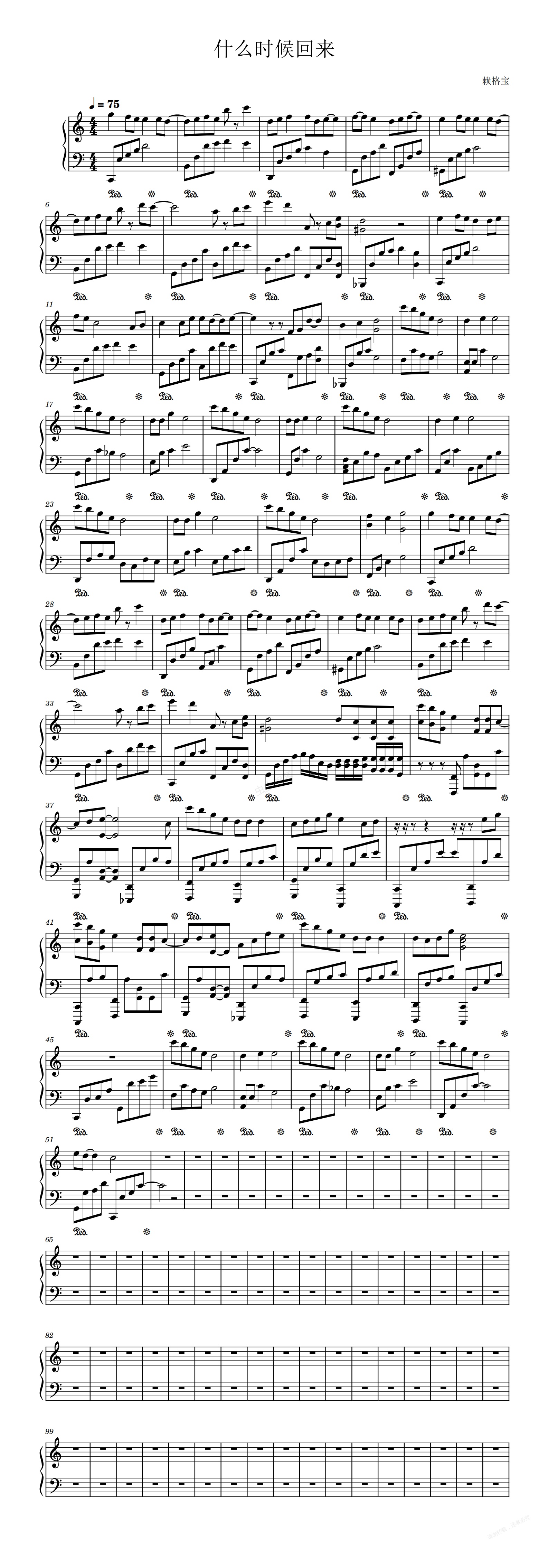 钢琴谱:什么时候回来
