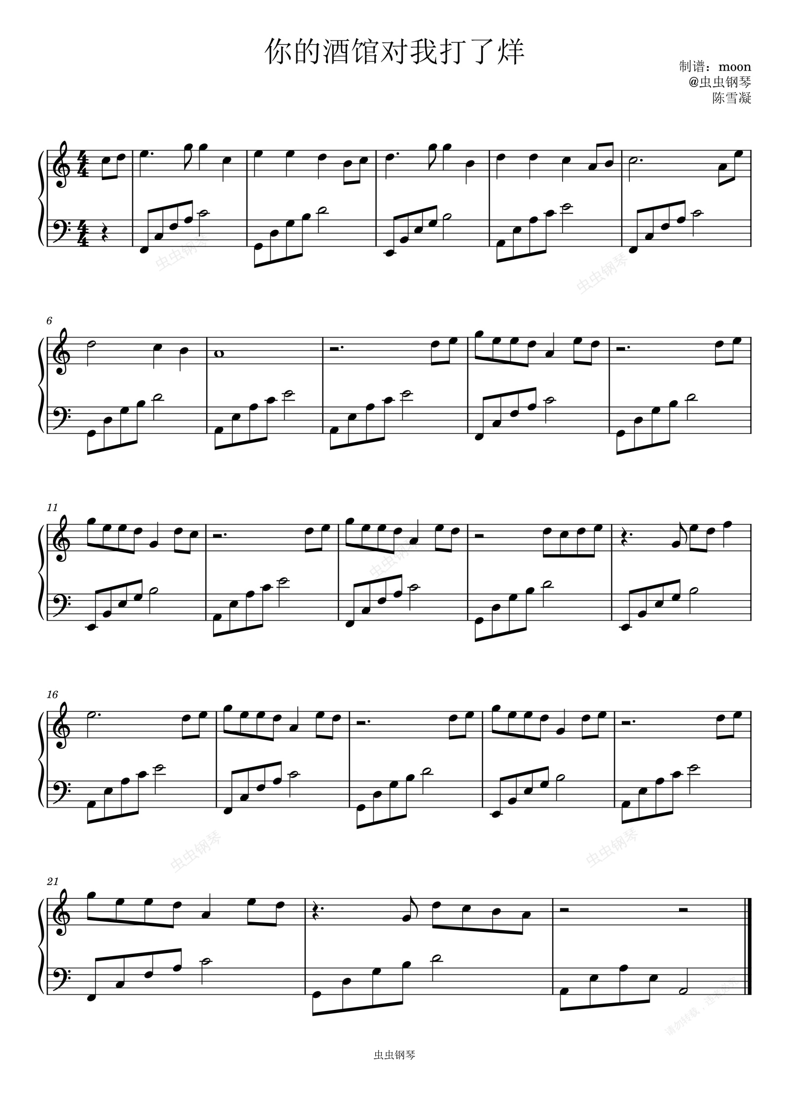 钢琴谱:你的酒馆对我打了烊 C调简易版