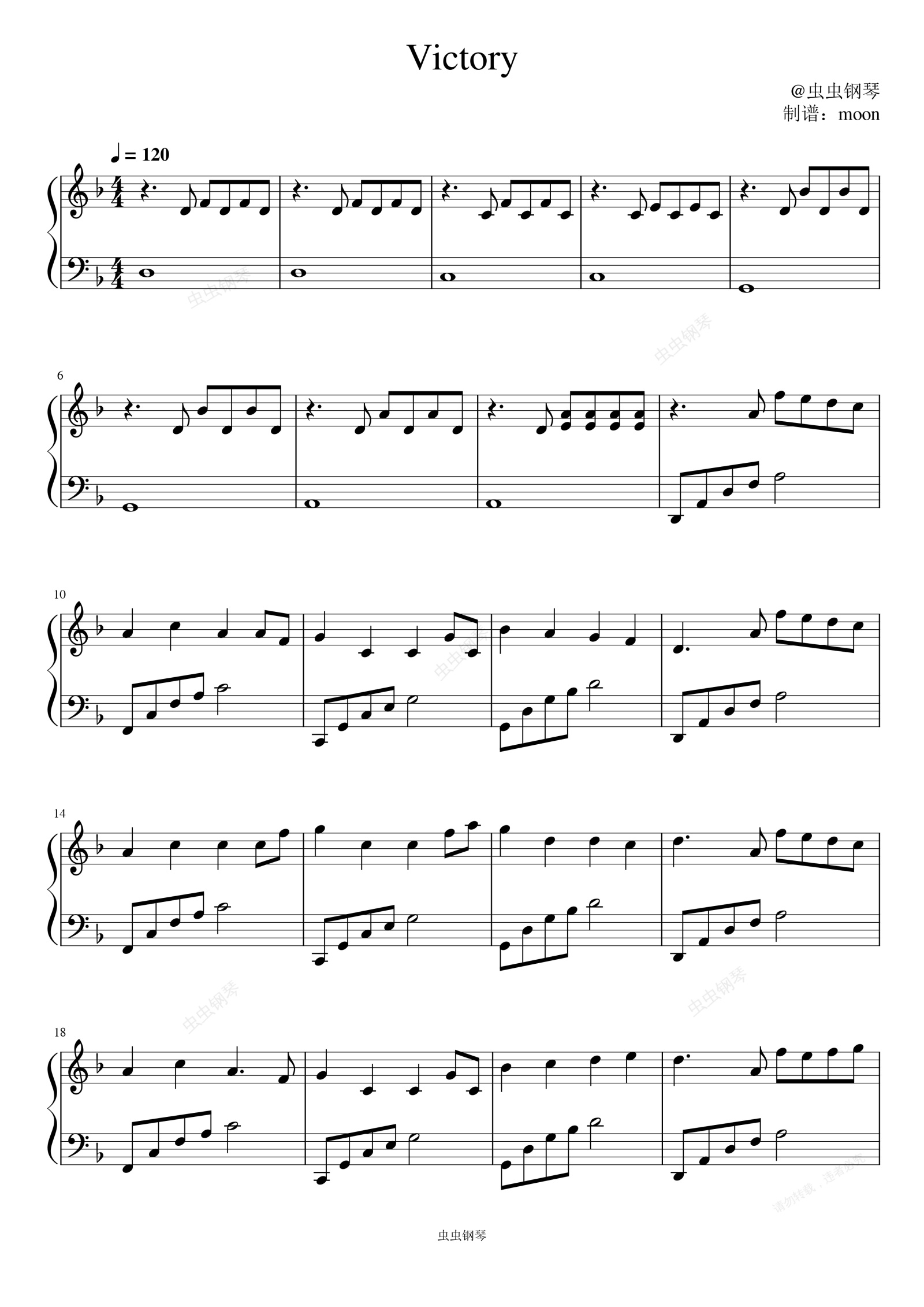 钢琴谱:Victory 大气背景音乐 初学精简版完美可弹