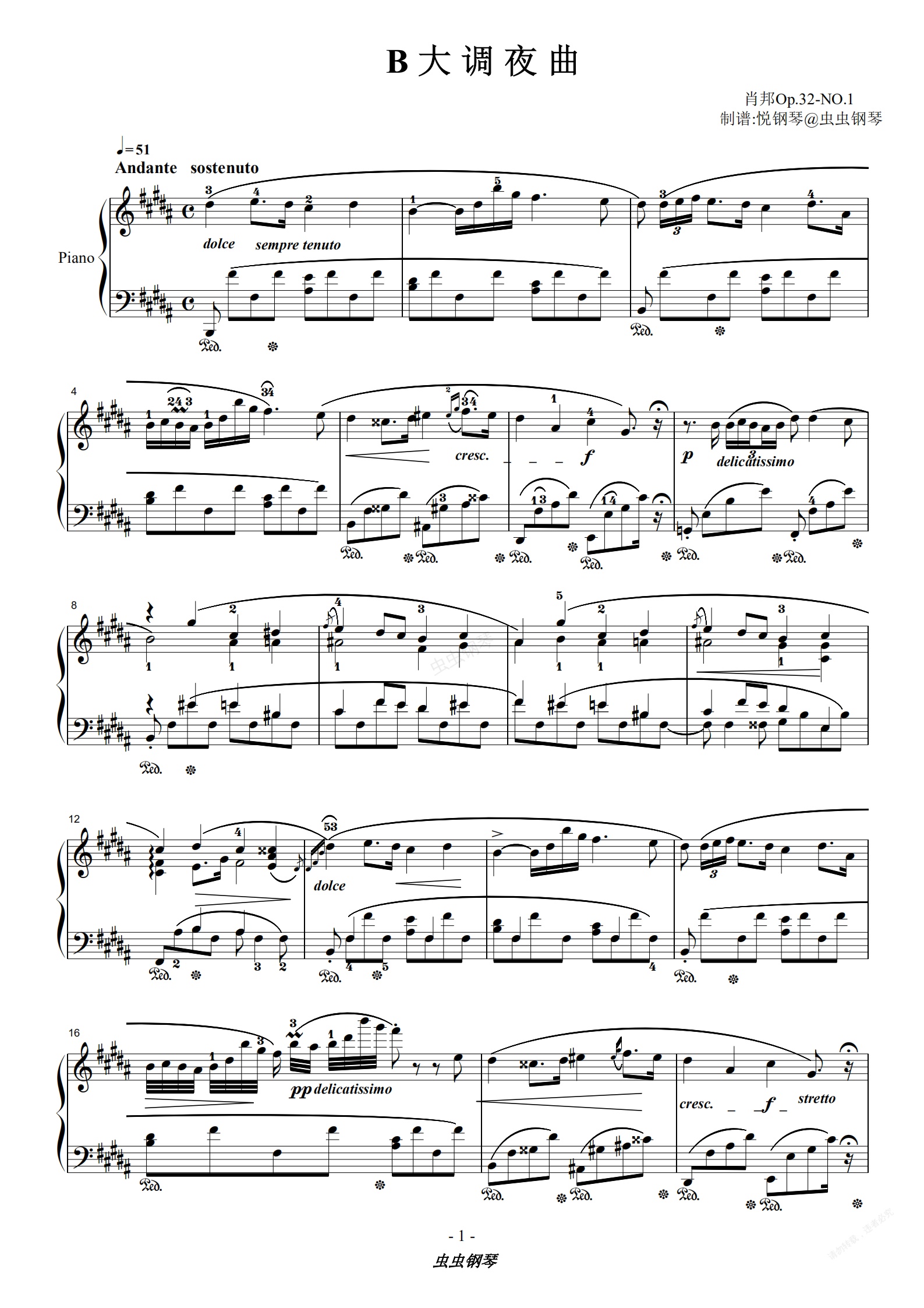 钢琴谱:肖邦 B大调夜曲Op.32-NO.1