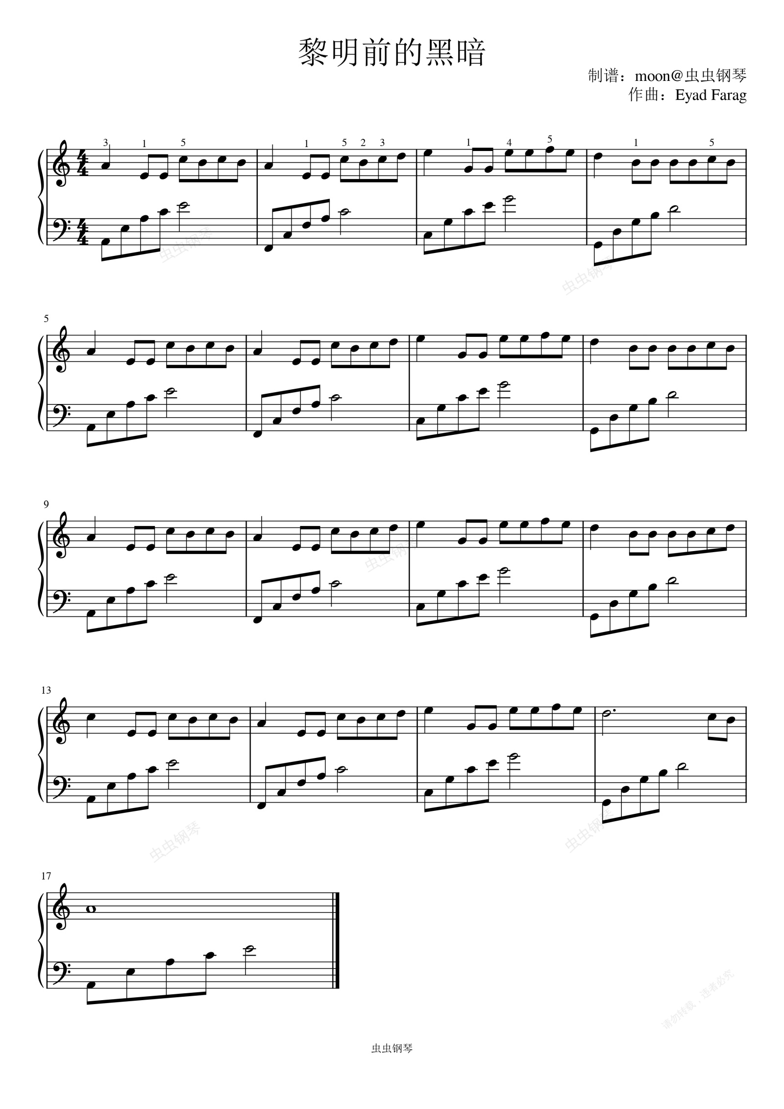 钢琴谱:黎明前的黑暗 C调简易版带指法