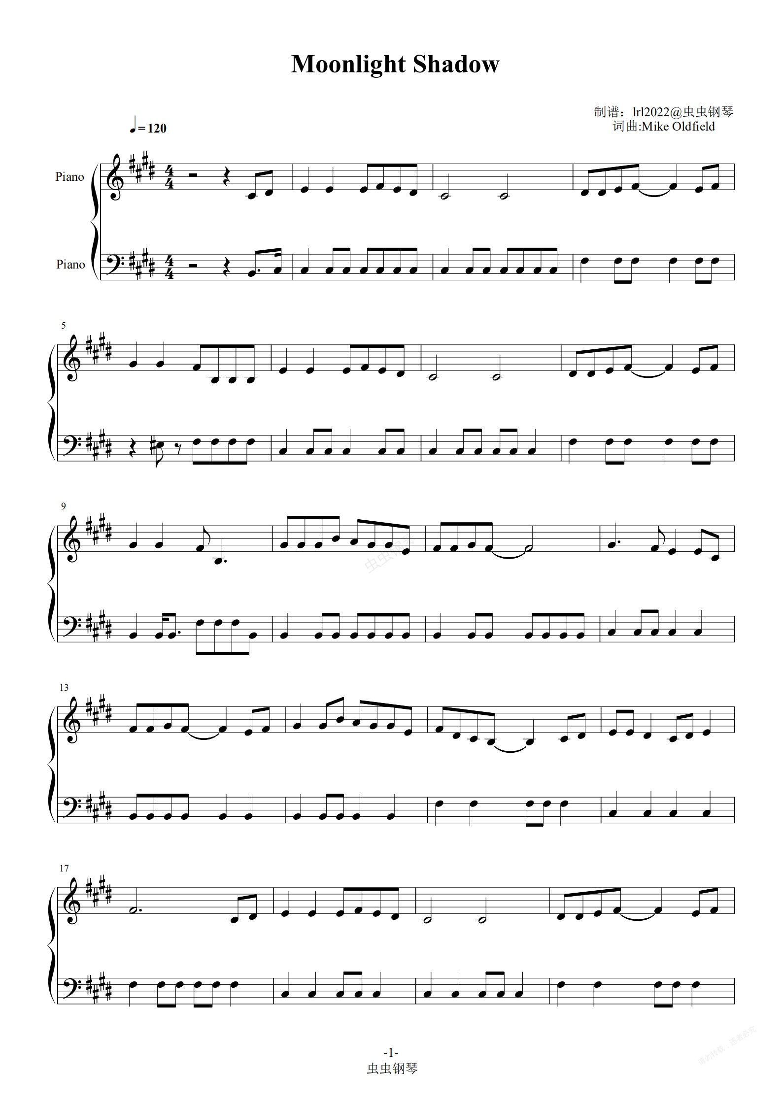 钢琴谱:Moonlight Shadow-独奏版-钢琴谱