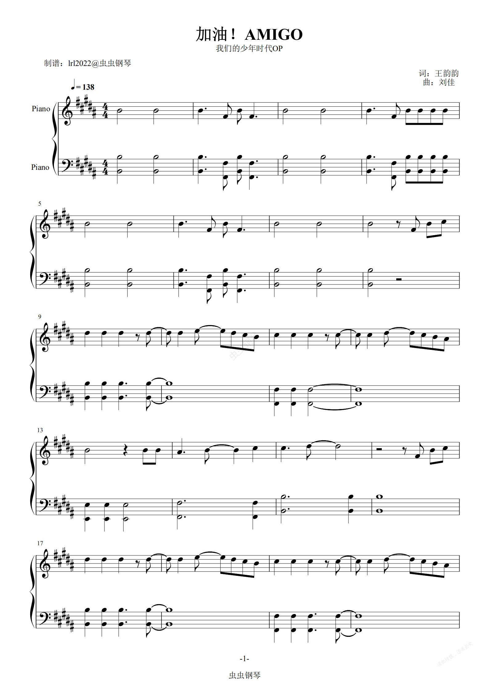 钢琴谱:加油!AMIGO-我们的少年时代OP-TFBOYS-独奏版-钢琴谱