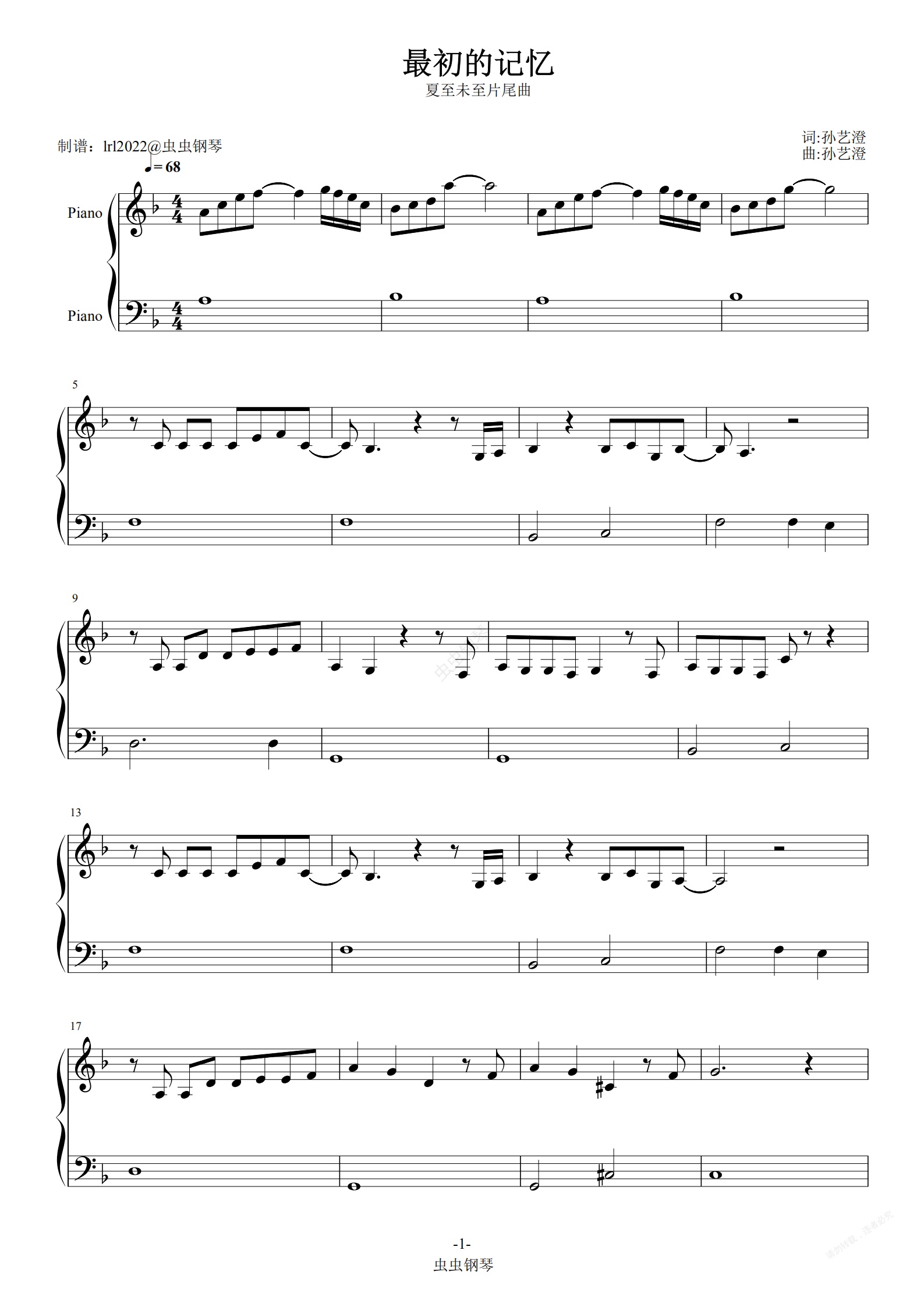 钢琴谱:最初的记忆-夏至未至片尾曲-独奏版-钢琴谱