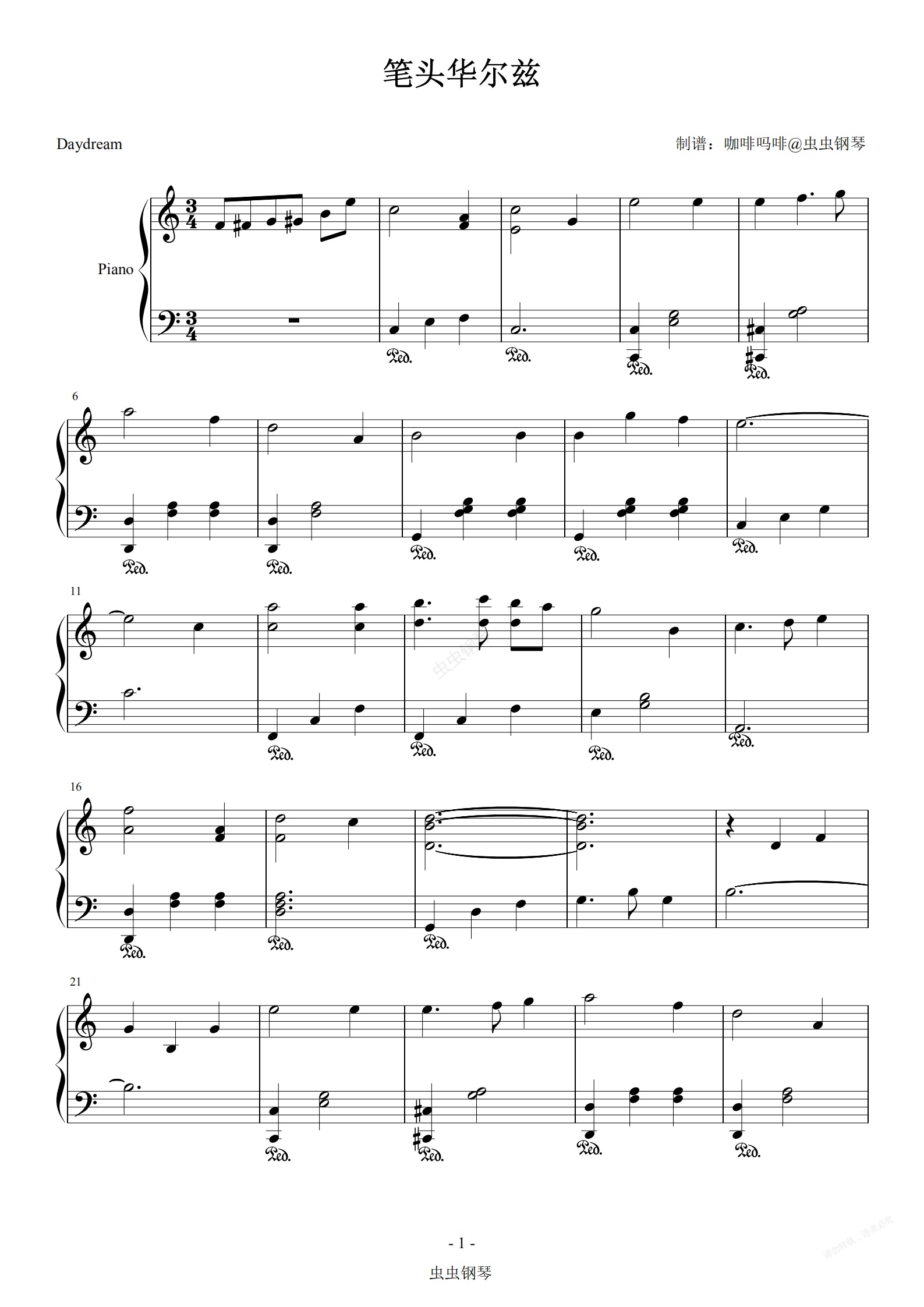 钢琴谱:笔头华尔兹-Daydream C调独奏谱