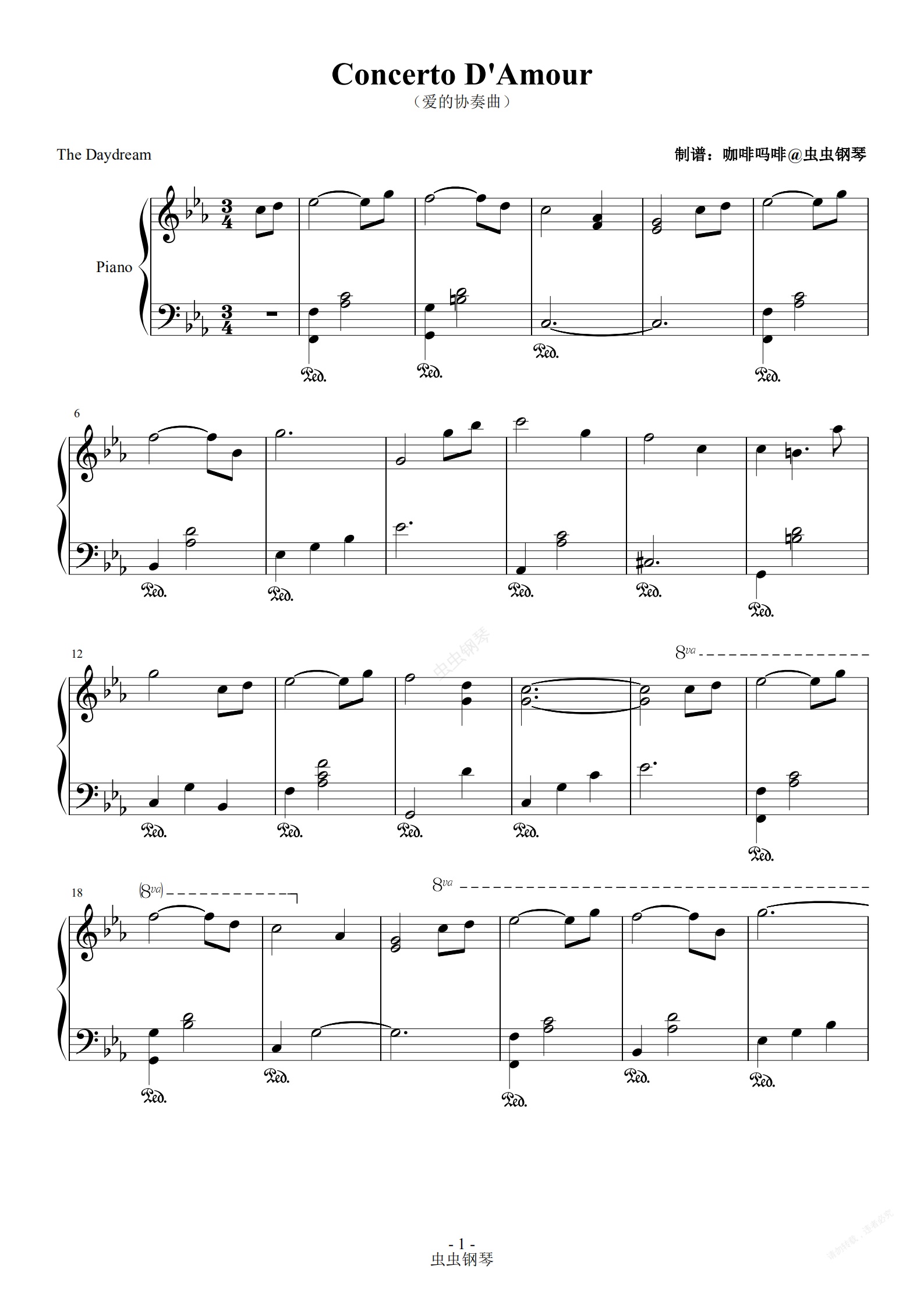 钢琴谱:Concerto D'Amour(爱的协奏曲)-The Daydream钢琴独奏谱