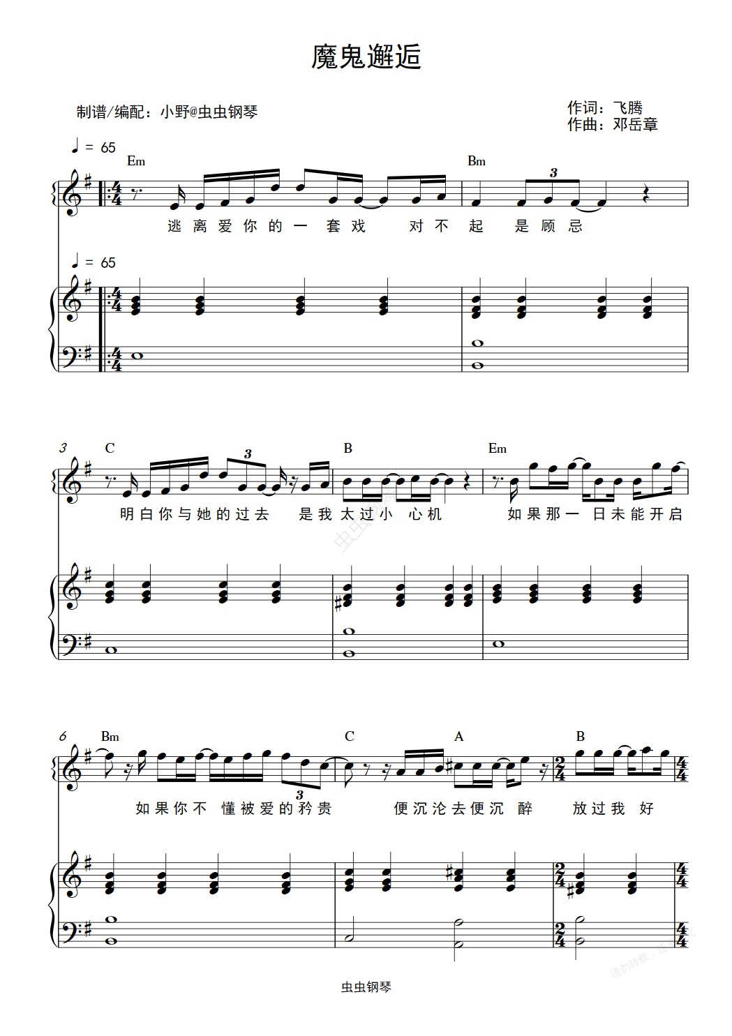 钢琴谱:魔鬼邂逅(和弦弹唱版)