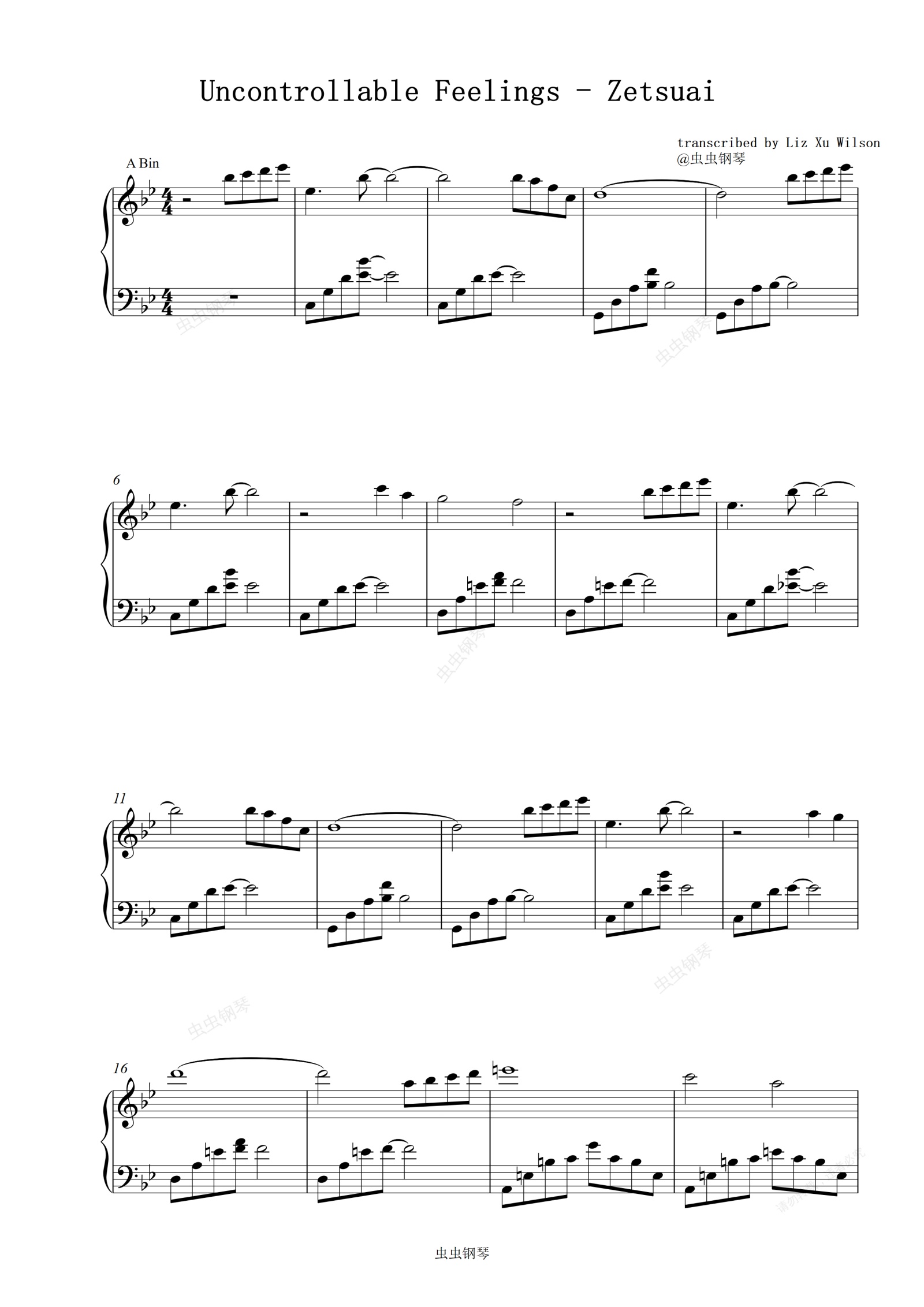 钢琴谱:Uncontrollable Feelings - Zetsuai