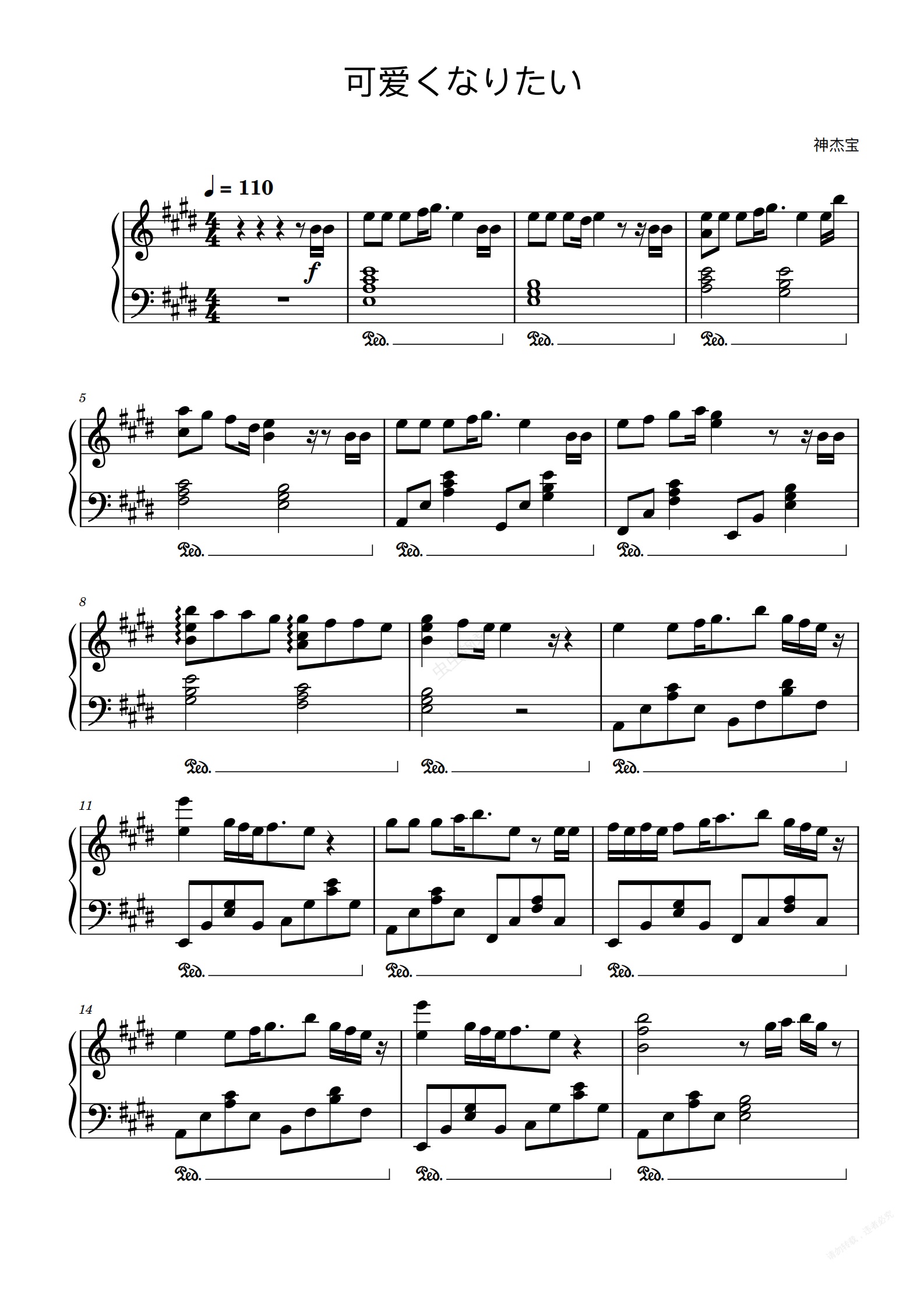 钢琴谱:想要变得可爱(可愛くなりたい)