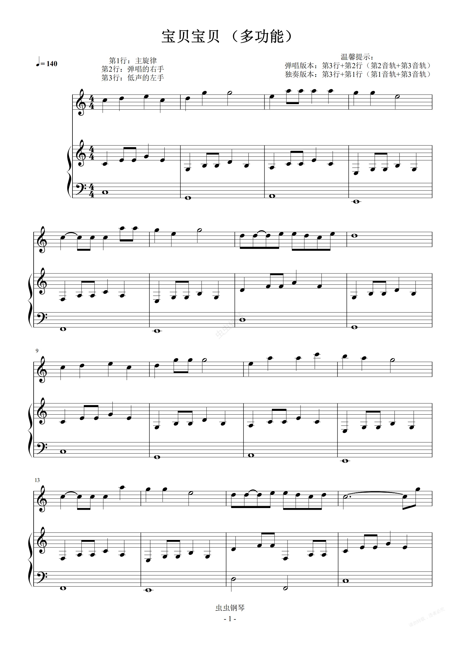 钢琴谱:宝贝宝贝 C调 弹唱+独奏 简易(小汤2)