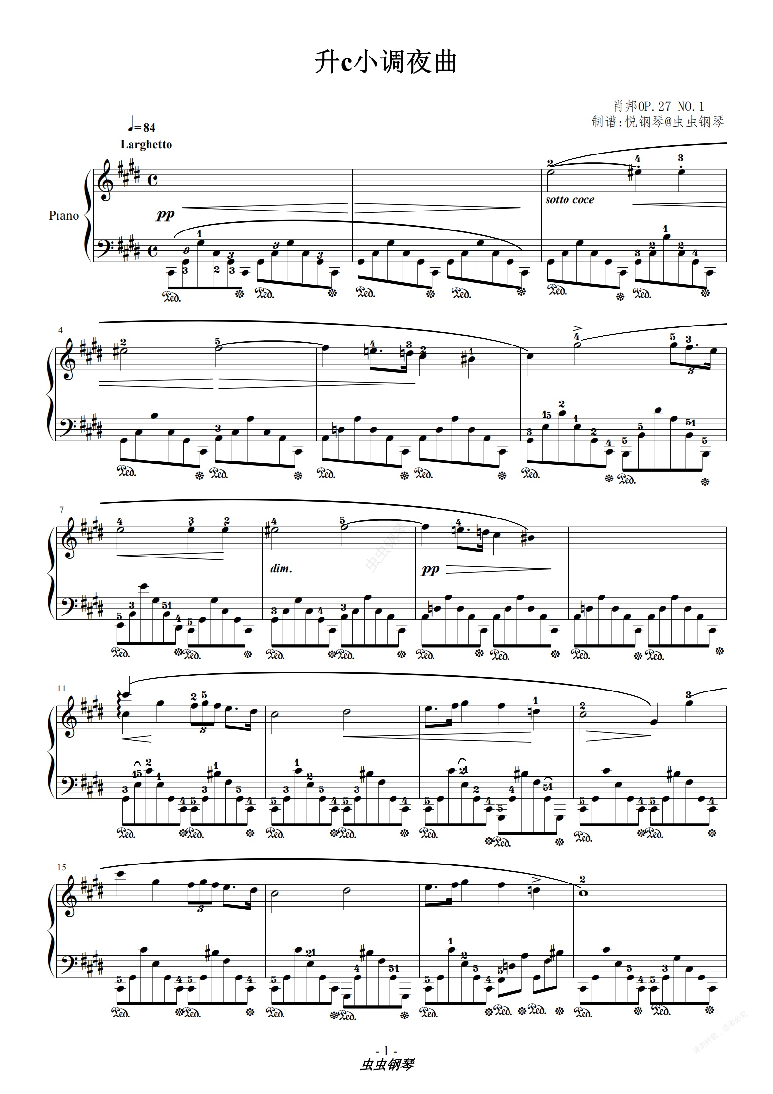 钢琴谱:肖邦 升c小调夜曲OP.27-NO.1