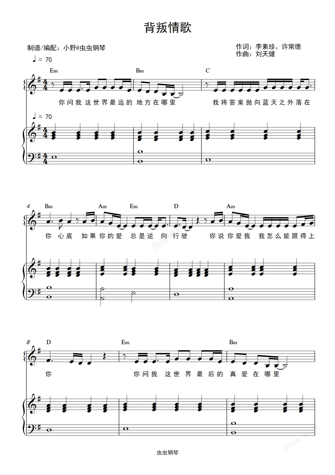钢琴谱:背叛情歌(和弦弹唱版)