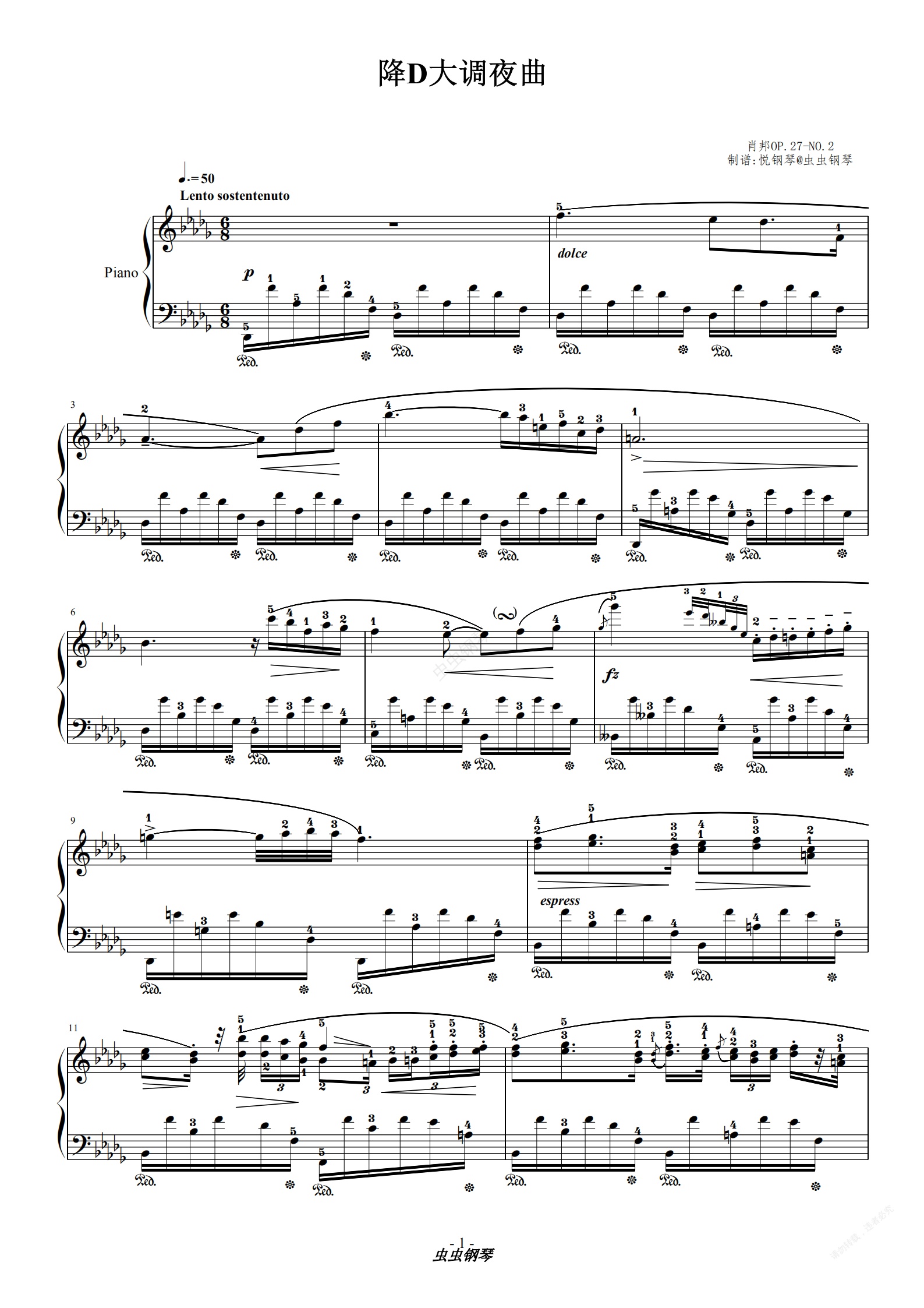 钢琴谱:肖邦 降D大调夜曲OP.27-NO.2