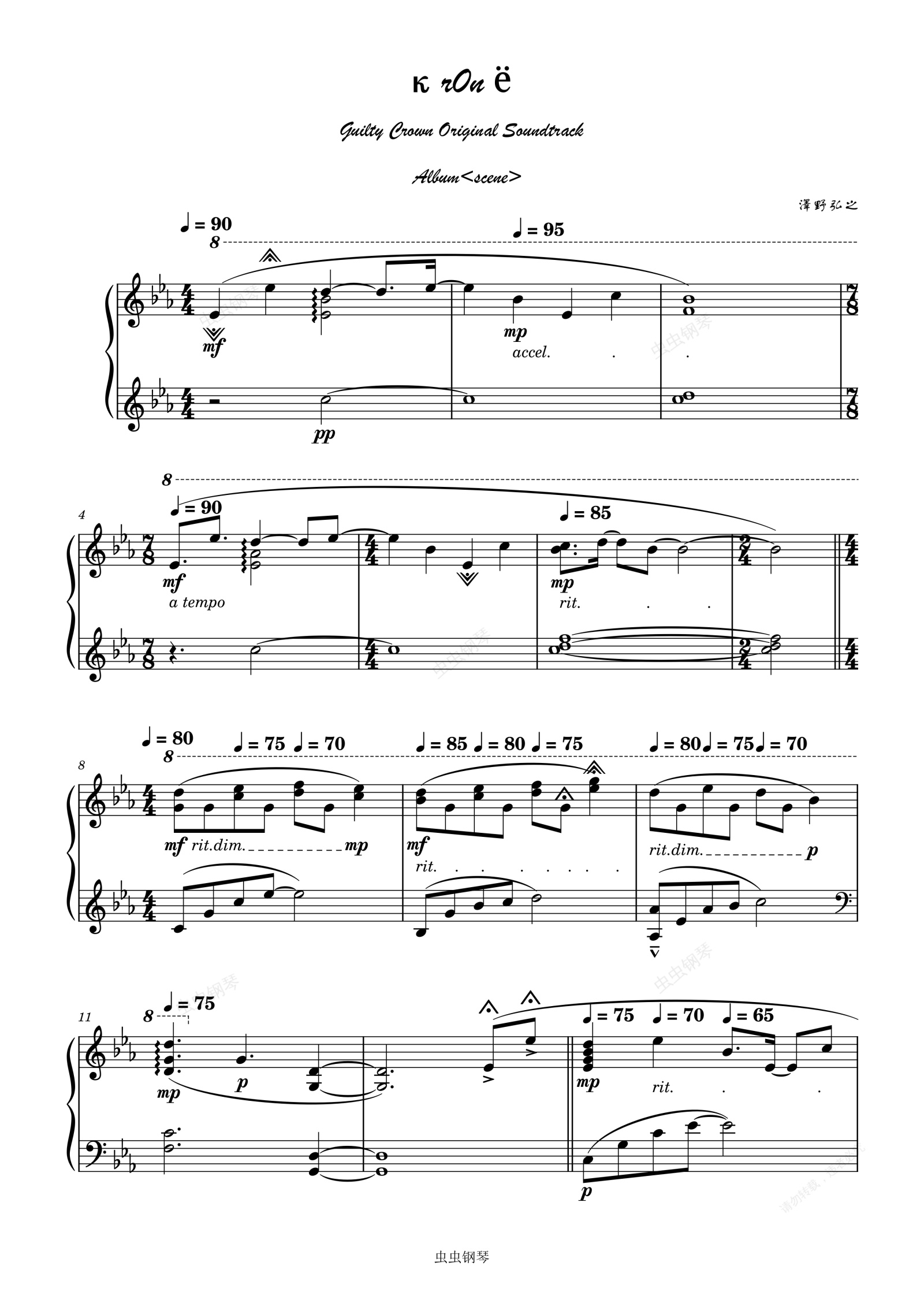 钢琴谱:κr0nё(《罪恶王冠》泽野弘之scene钢琴专辑版》