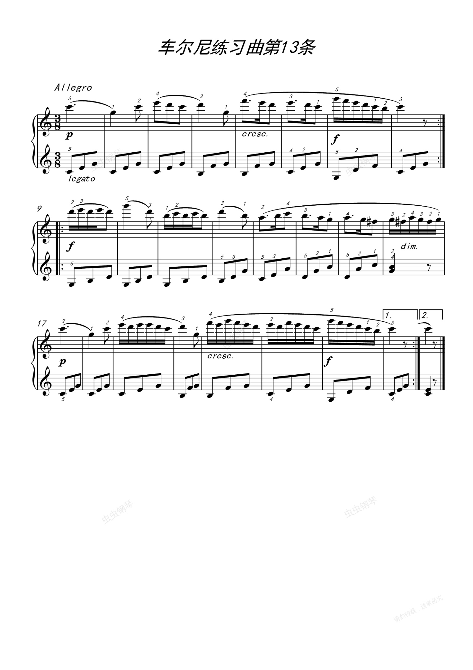 钢琴谱:车尔尼练习曲139第13条