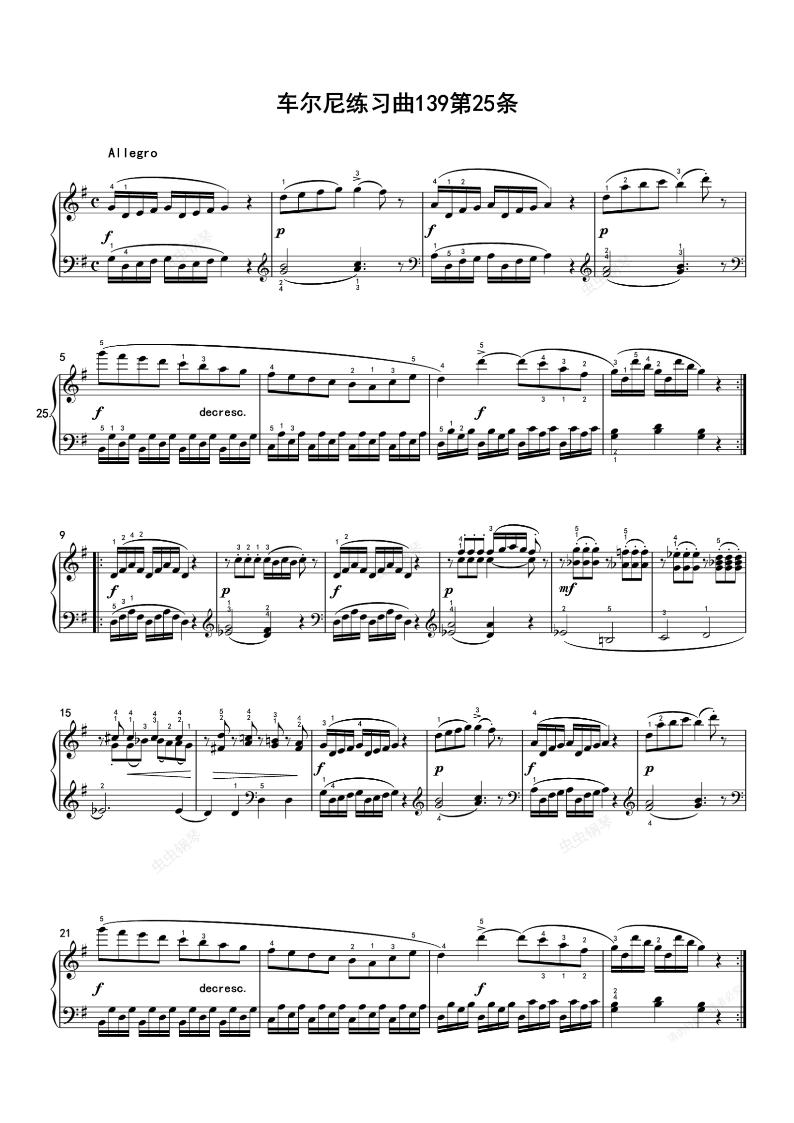 钢琴谱:车尔尼练习曲139第25条