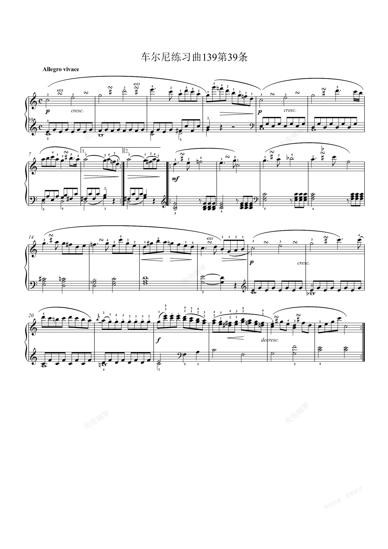 钢琴谱:车尔尼练习曲139第39条