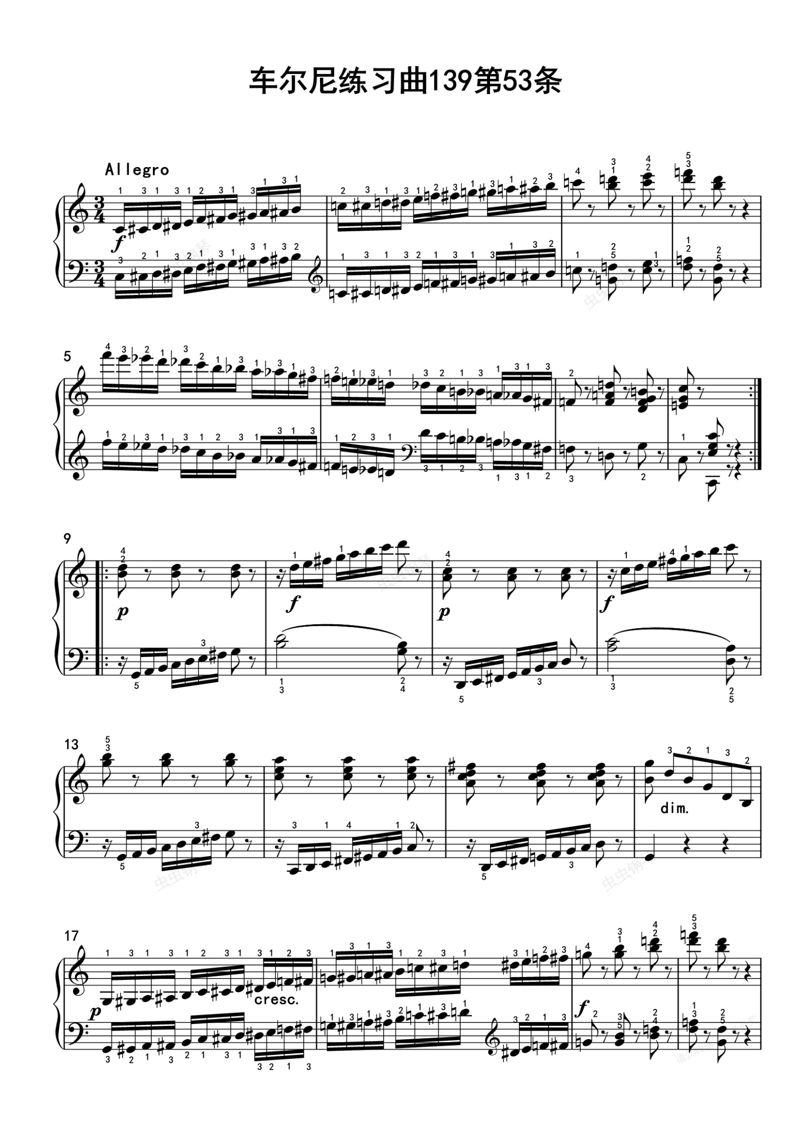 钢琴谱:车尔尼练习曲139第53条